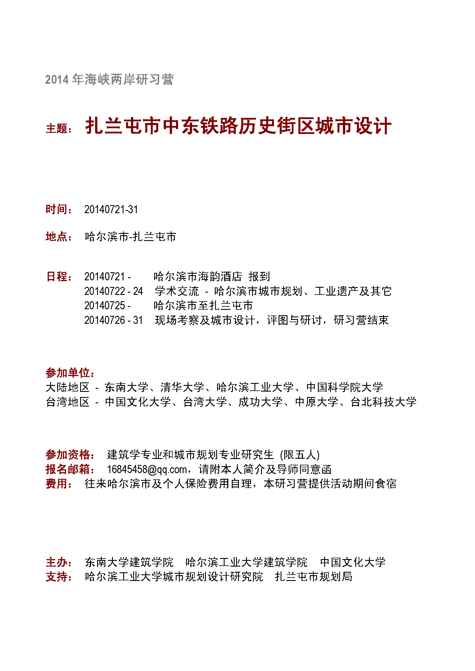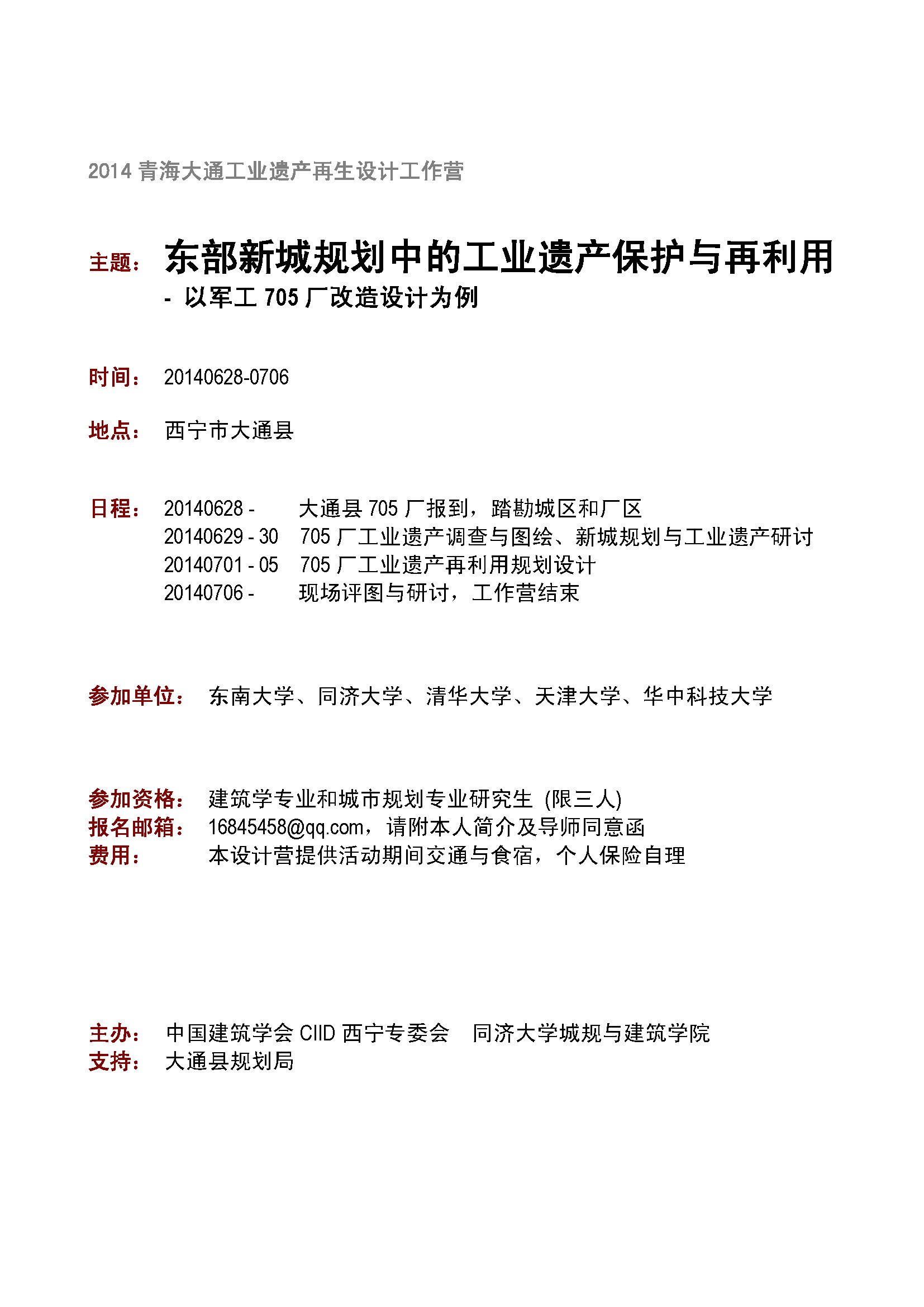 2014年海峡两岸研习营、青海工业遗产设计营通知