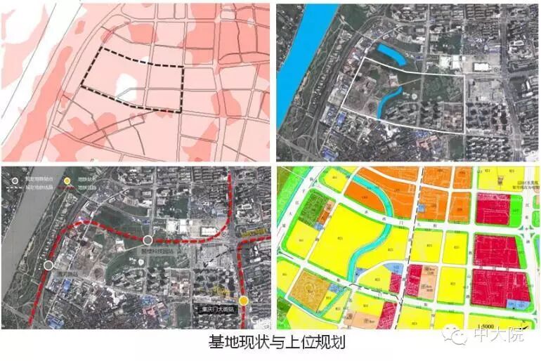 基地位于南京河西新城区北部地区,总规划用地面积约65.99ha,北部和西部有两处地铁9号线站点,距东侧地铁2号线站点550米。基地北侧为南京国际服务外包产业园;南侧为江苏省老年公寓和规划居住用地;西侧与长江相隔1个街区;东侧为万达广场城市综合体。基地内部有一条城市市政河道。