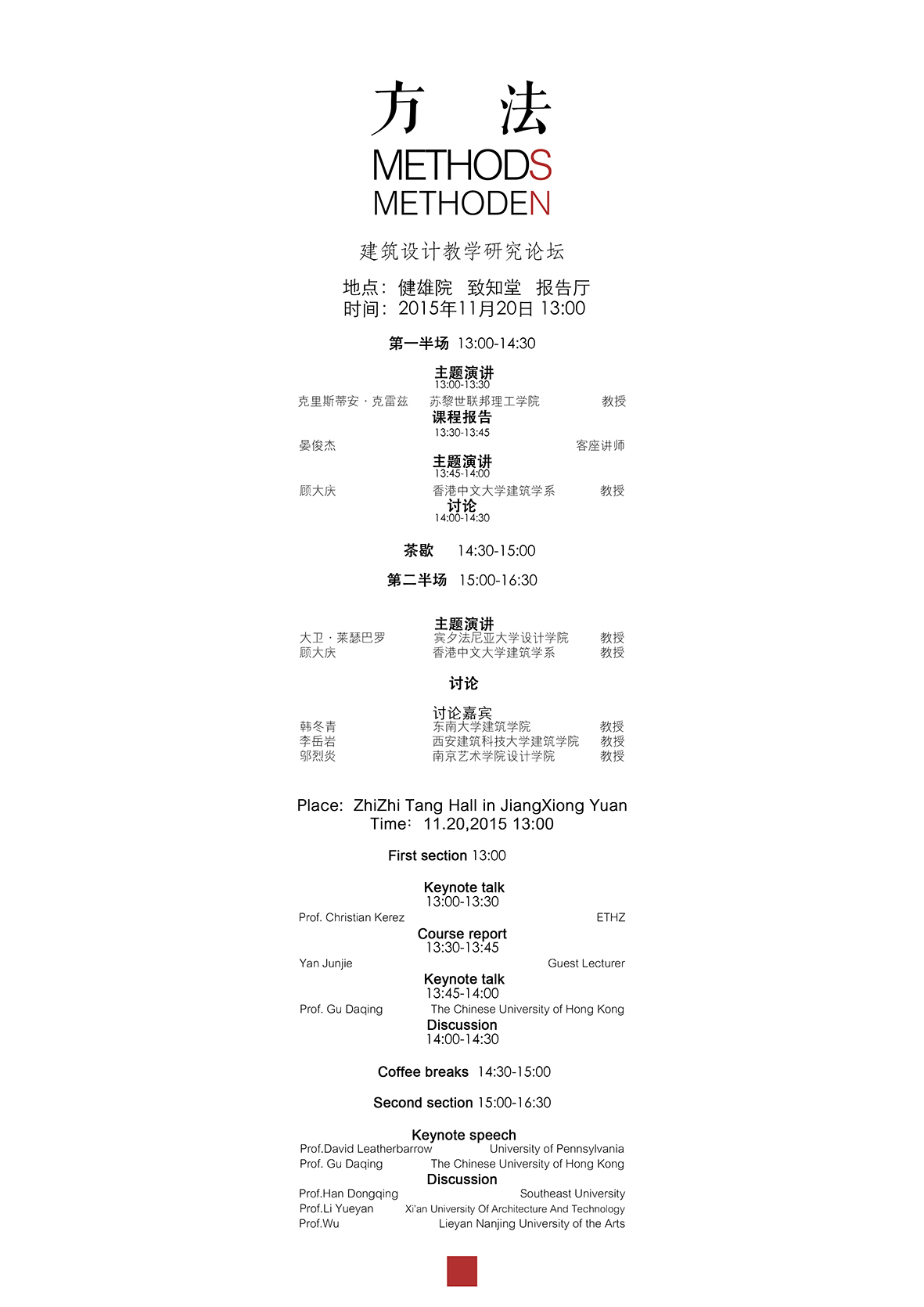 2015年9月,瑞士当代著名建筑师、瑞士苏黎世联邦理工学院(ETH)建筑系教授Christian Kerez在启动了本学期他所主持的名师前沿设计课程“从概念到模型”的教学。