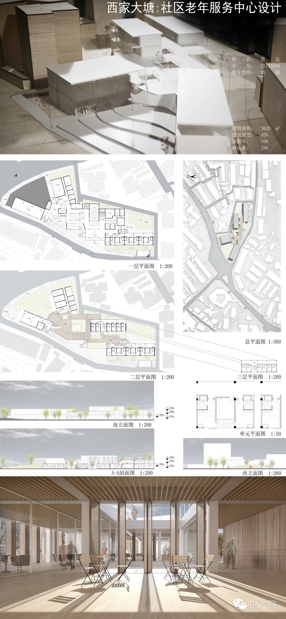 设计高密度城市中心区中的社区养老服务中心,培养对社区公共生活与空间的敏感性,初步掌握建成环境中新建公共建筑的设计原理和方法。