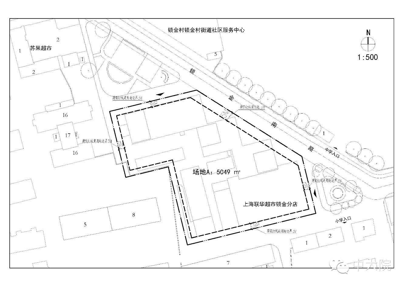 位于锁金村社区中心,用地面积约5050平方米。周边为多层高密度成熟社区,基地东北侧为中学用地,及社区服务中心。用地南北两侧各有一社区开放空间,南侧开放空间面对小学入口(见下图)。