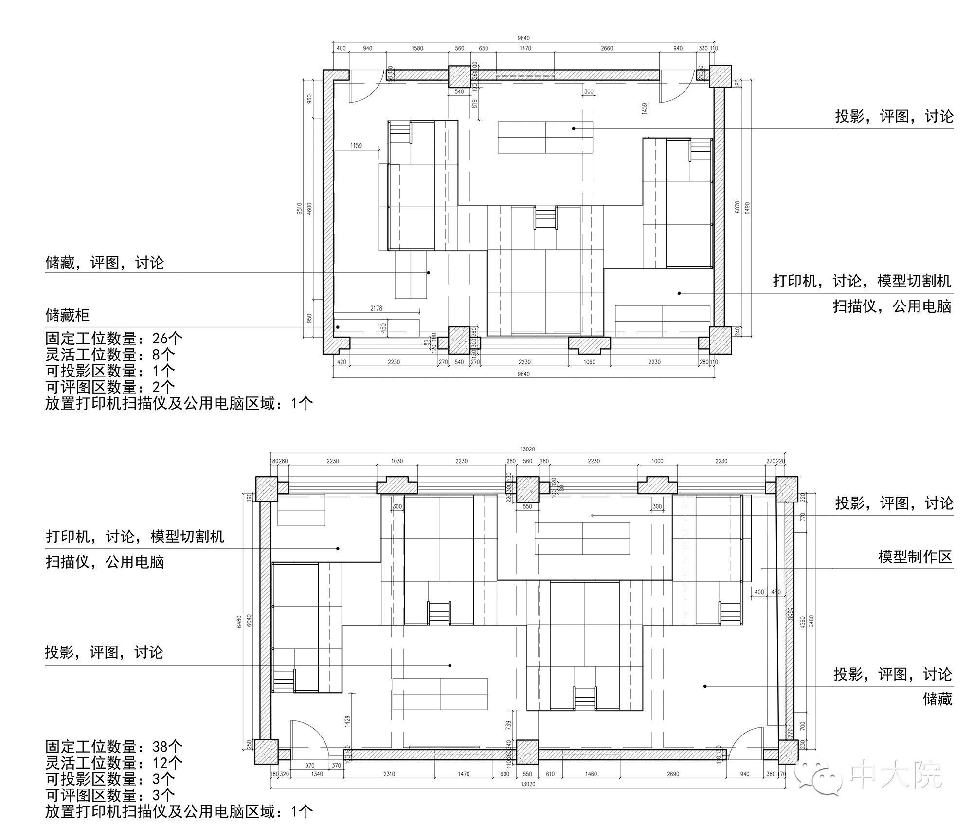 系统应同时完成设计专业教室学习、讨论、展示与收纳四种功能,并在有限的空间内获得尽可能多的有效工位。