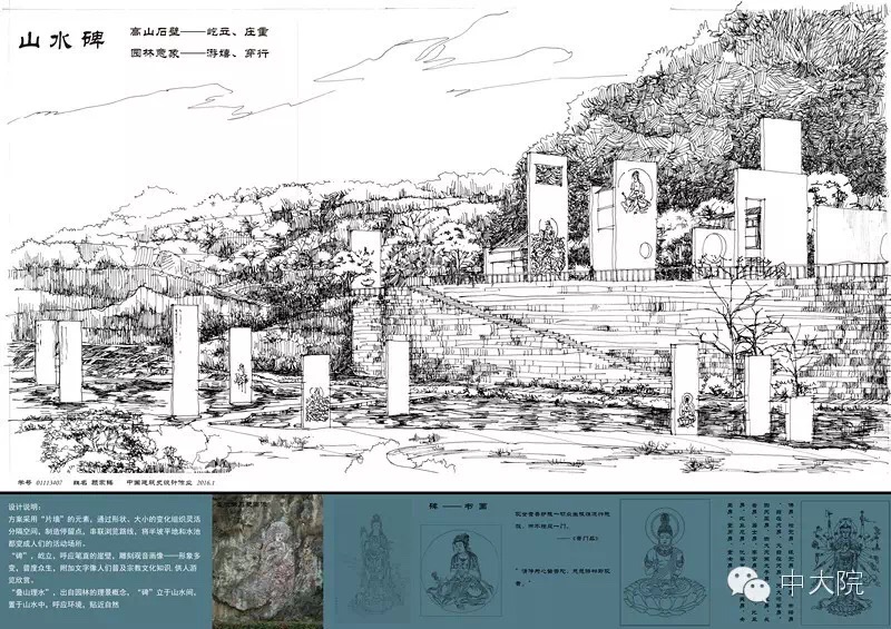 期待学生结合地形、视野和景致,完成一项建筑意向设计,要求和“中国建筑史”学习中得到的智慧和概念或手法有关联,功能自定、规模自定、分析图自定。