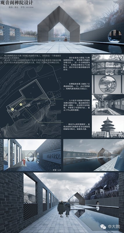 “中国建筑史”课程是学生学习中国历史上的建筑设计、城市规划、景观创造的一种途径,历史也提供了一种思维方式和创作的源泉。本意向设计是中国建筑史课程教学中的重要一环,希望通过具体的地点、真实的设计、出自对于建筑史提供的概念构想,表达从历史走向当代的一种设计创意。
