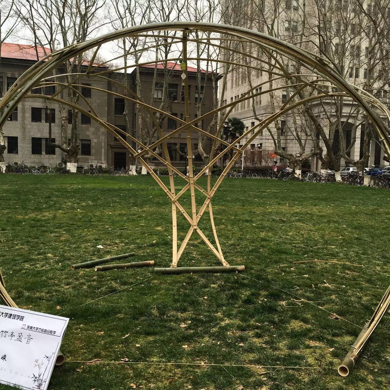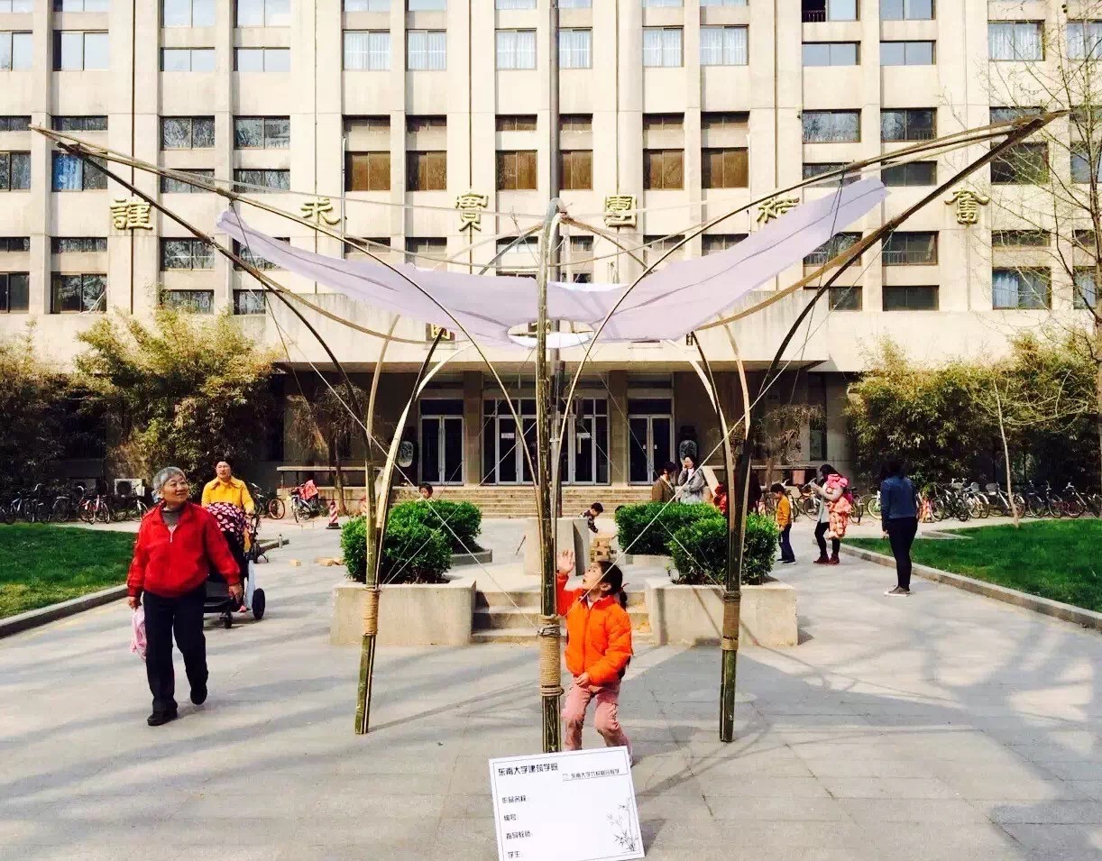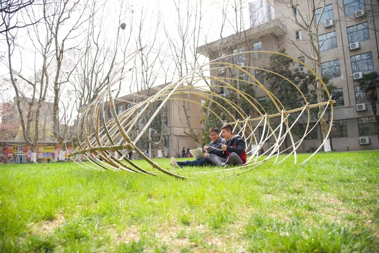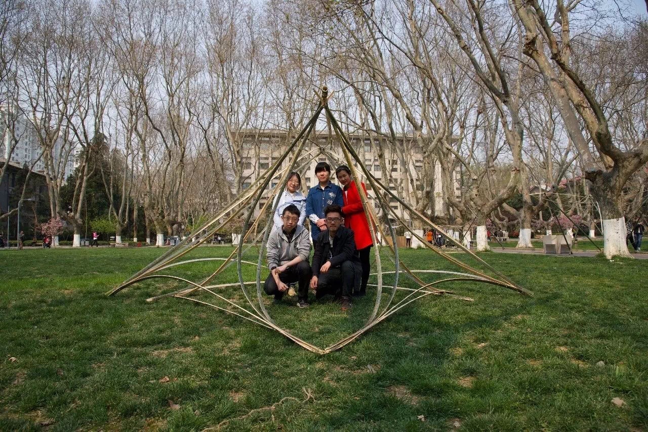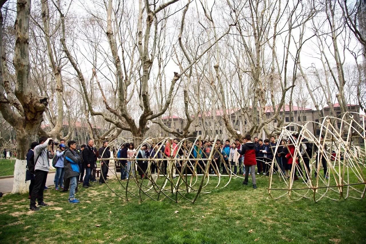 春暖花开之际,梧桐飘絮之前,联合苏州大学建筑系、南京艺术学院传媒学院、南京工业大学建筑学院,进行了第二届竹构建造设计的联合教学。