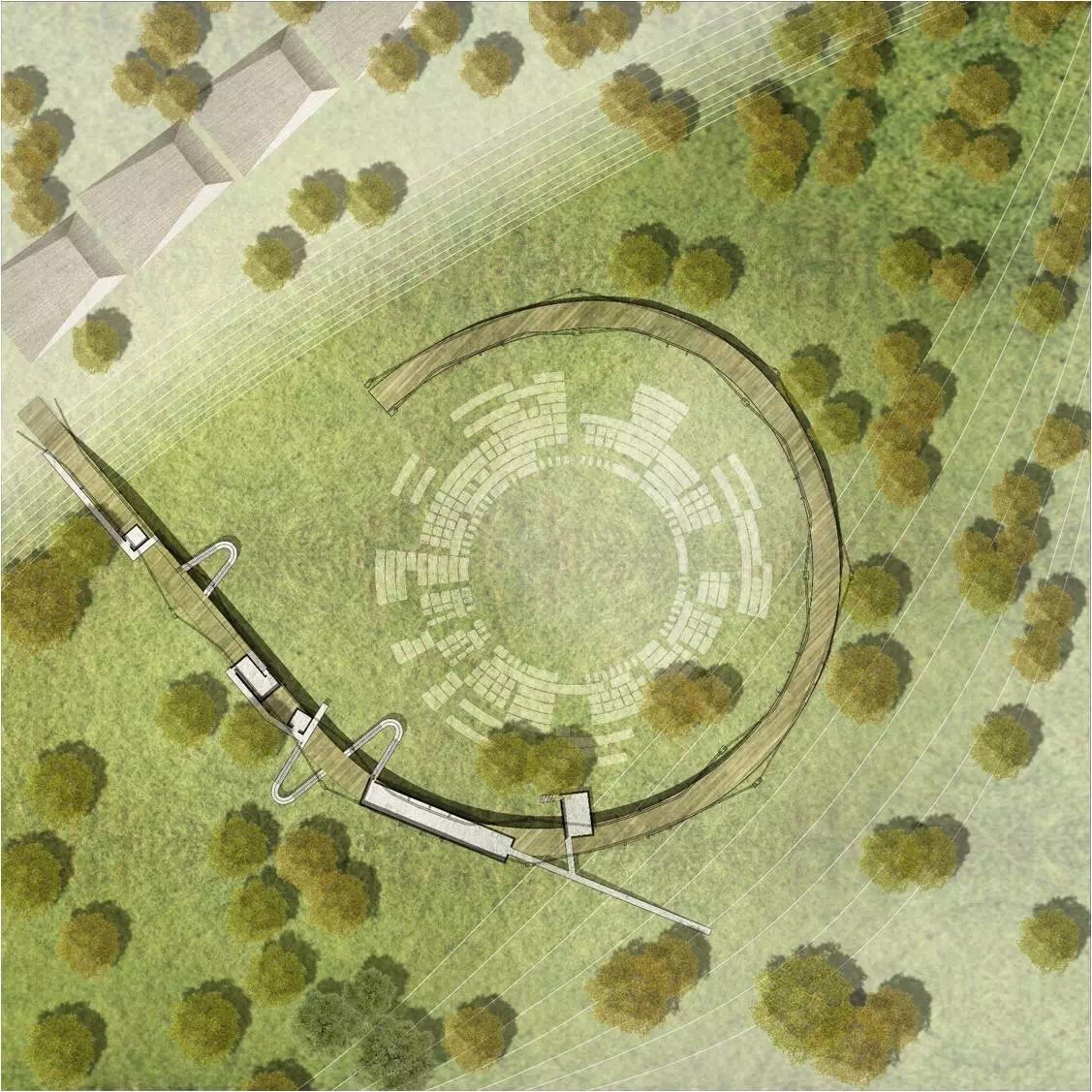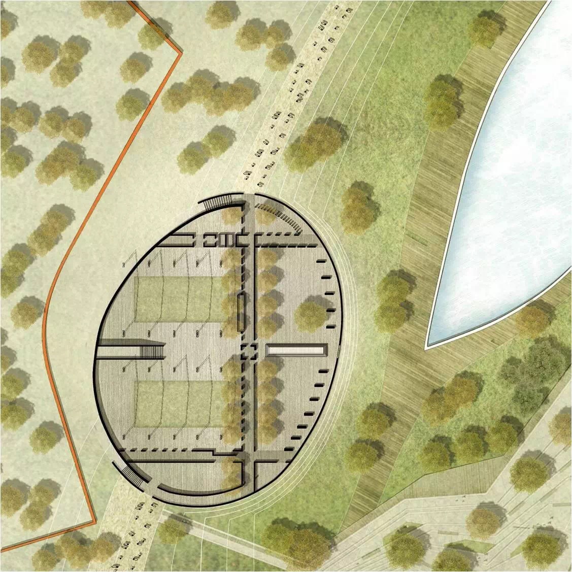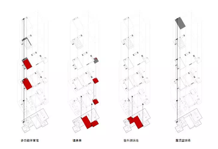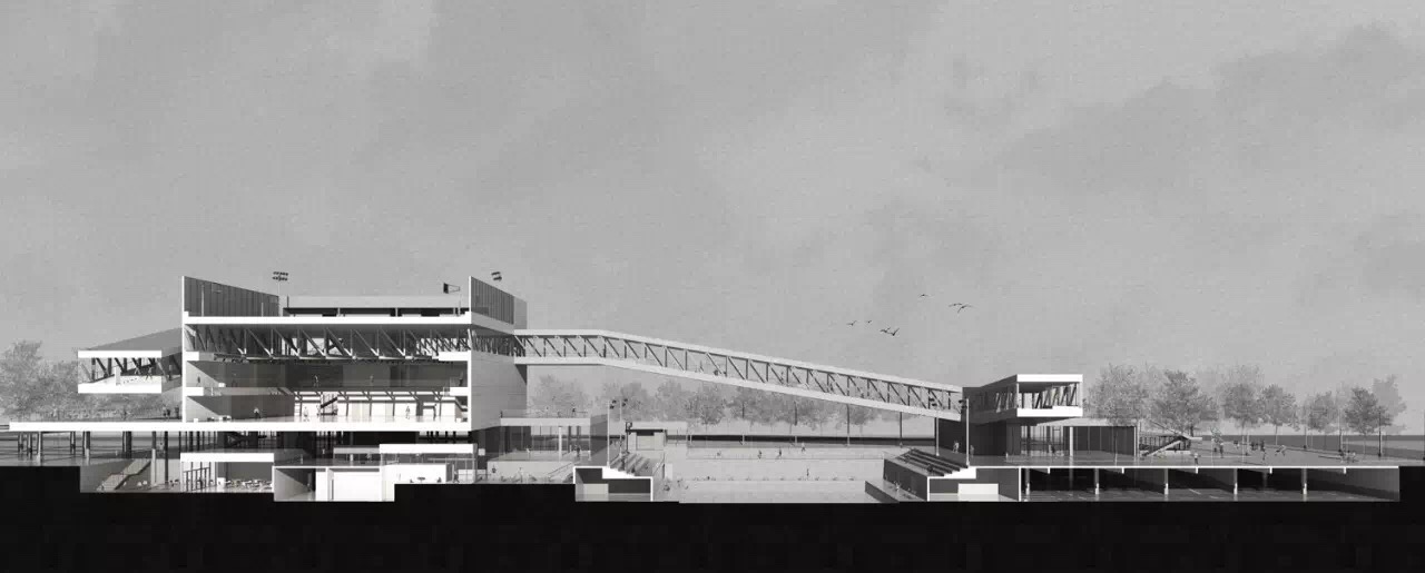 单体建筑设计选择不同类型节点展开。“水市牌坊”从挖掘场地记忆出发探索传统意象的当代表达,在城、村交接的重要节点营造了具有精神内涵的全新建筑;“速度市井”从激发铁道旁较为消极的线性空间活力出发,以不同速度感知为题创造了展现快慢、大小等二元性的双面城市空间;“欢乐水市”营造了容纳体育活动的开放门户与开敞现代的市民空间;“桥上市集”在高密度环境中融合衣食住行的多元体验创造出具有文化意蕴的新桥上空间。