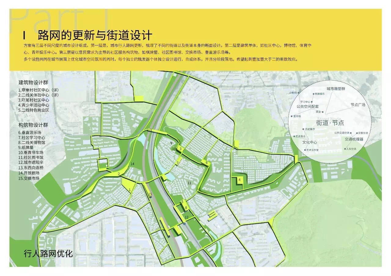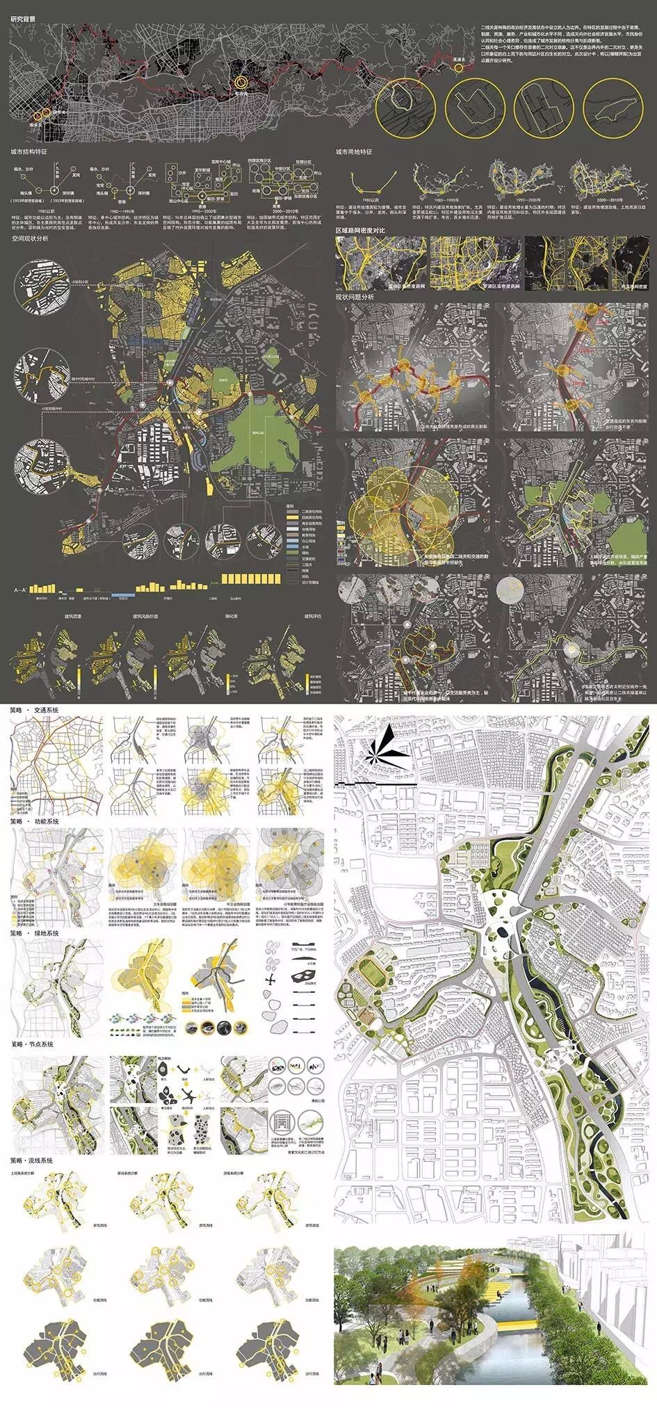 该方案最大的特点在于设计解题思路不是去追求深圳二线拆关这一宏大叙事背景下城市所谓的终极蓝图,而是在城市现代性语境下以一种植根于城市日常生活的在地性思考,探讨了生活事件作为联系城市物质空间与社会生活媒介的可能性,以城市人文主义的视野建立了一种关注生活实践的城市空间价值判断,使得设计的构想能够改变城市形态、介入城市生活、干预城市发展。城市设计不仅仅是设计城市,更是设计生活。