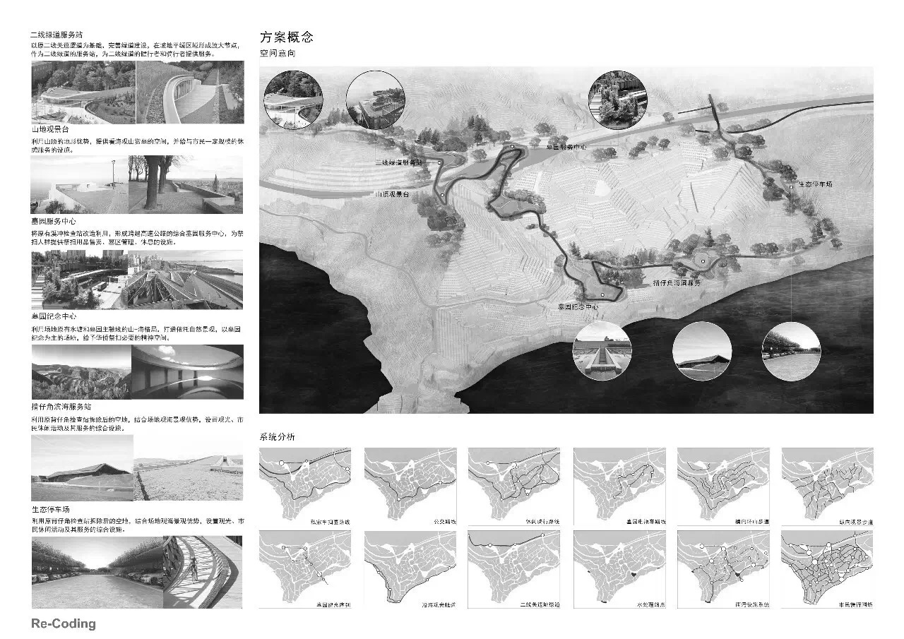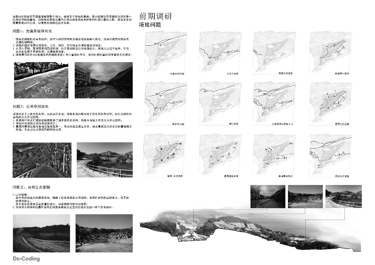 该毕业设计选址二线关最东端的溪涌关及其毗邻的大鹏湾华侨墓园,研究二线关沿线与海岸公共空间的连续性、海岸丘陵地貌与生态基质的保存与修复,以及墓园独特的精神性氛围融入城市公共生活的可能性。