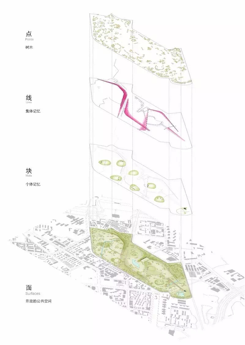 2、不同于常规的趋于静态结果的形态设计,该毕业设计借鉴景观都市学的理论和方法,成果指向一种开放、系统而富有弹性的设计策略,并且具有容纳在时间进程中的调整和变化的能力。