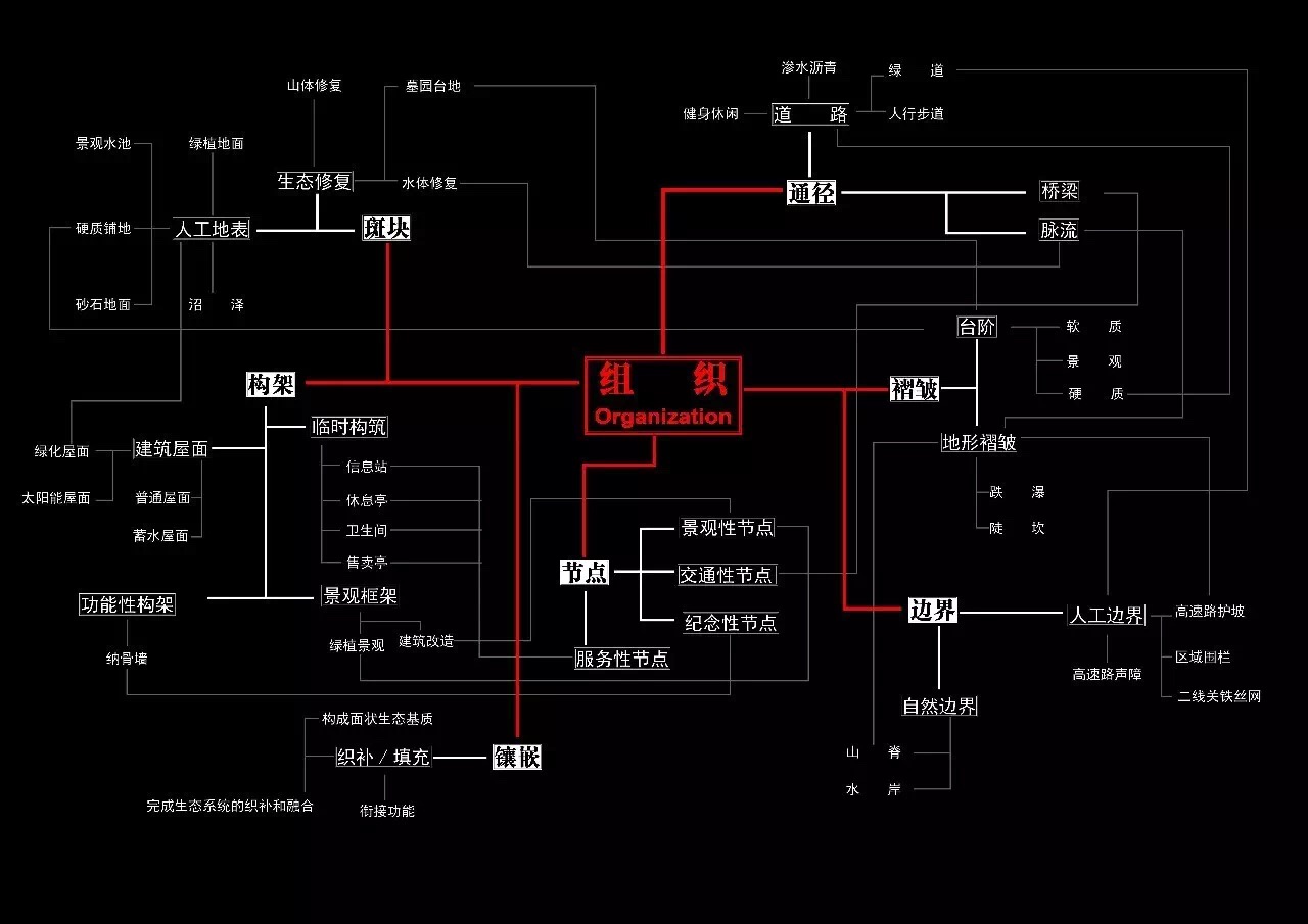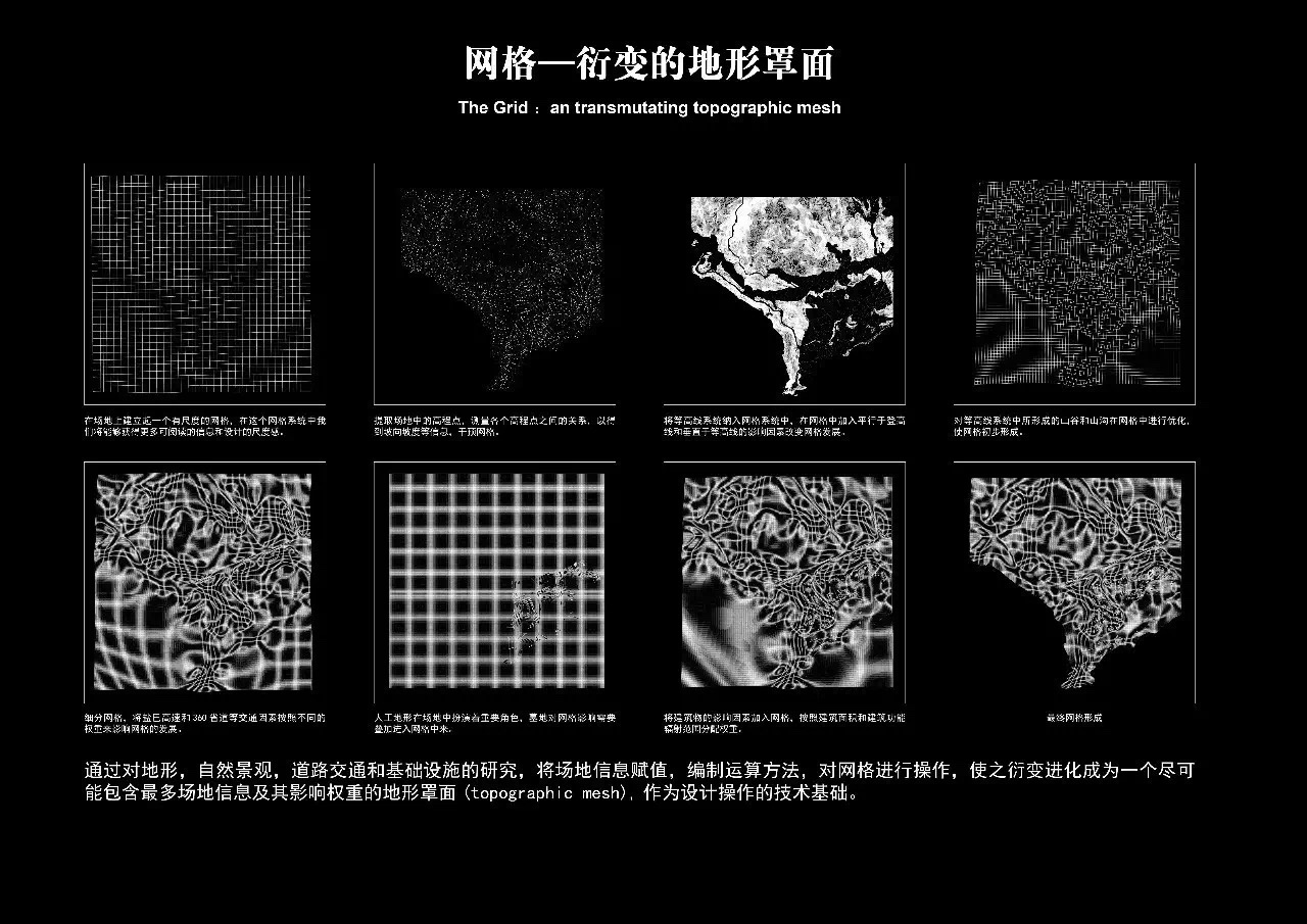 研究和设计的工作包括现状调研、问题剖析、系统组构与地形罩面,以及景观编码设计策略研究若干阶段。借鉴景观都市学的理论和方法,在地块与周边的整体区域范围内,通过分析性的系统层叠、容纳场地多类信息的地形罩面生成,建立包含结构、组织与元素的景观环境编码系统,着重聚焦斑块、构架、褶皱、边界、通径、节点和镶嵌等七种组织,提出旨在激发、引导和控制城市空间再兴和景观生态修复的系统而富有弹性的设计策略。