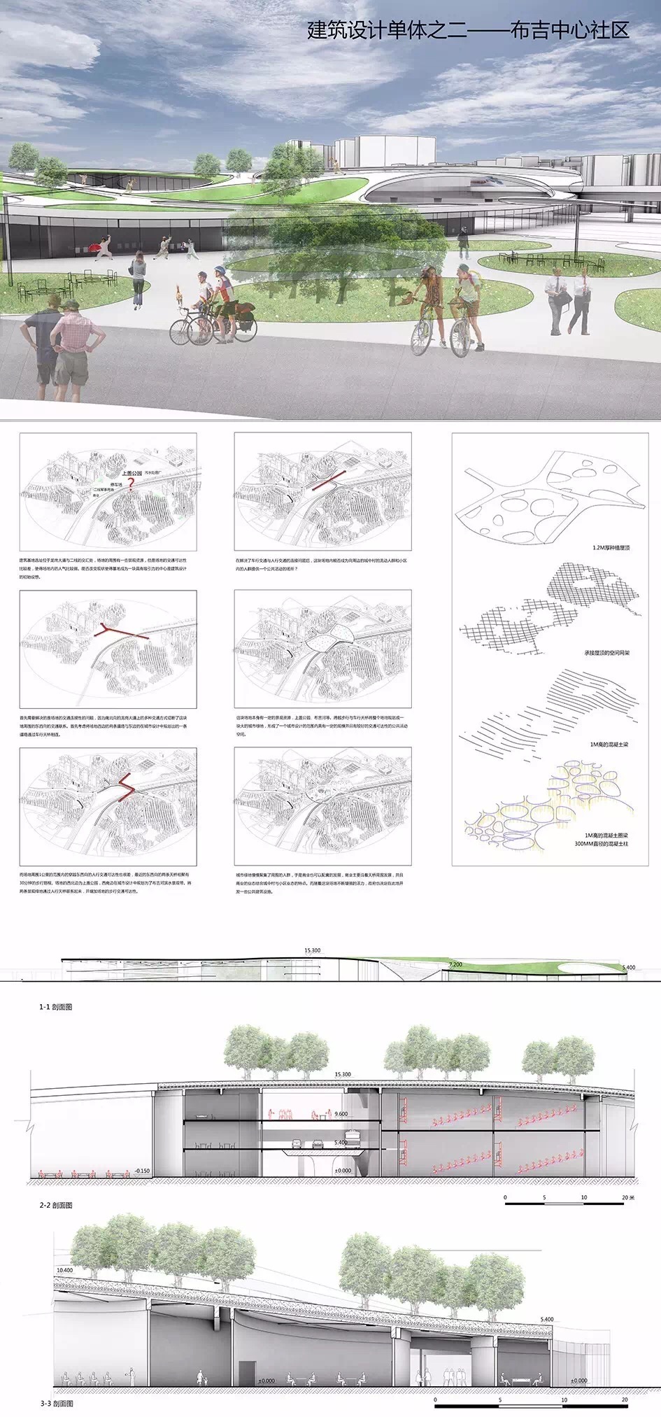 设计者从解析深圳城市空间边界和中心的二元属性入手,对地段内被忽视的市井生活与自然要素的挖掘与重塑,以“边市中心”为概念创造出具有深圳地方特色、同时又面向未来的全新空间体验。方案逻辑架构清晰,很好地诠释了边界与中心、记忆与创新的辩证关系,具有一定的思考深度和创新性。