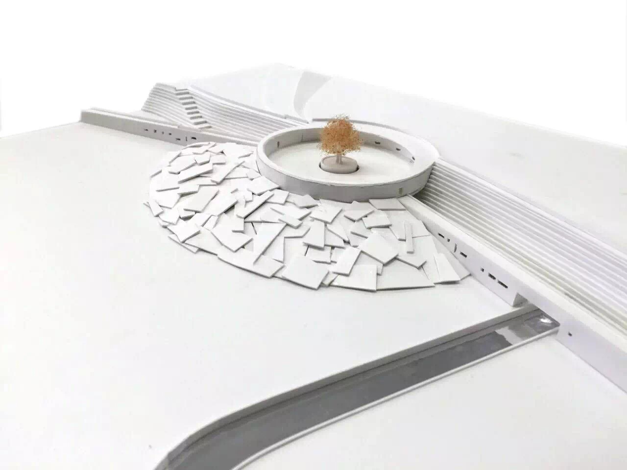 在单体建筑设计中,以建筑师创意研究中心为设定对象,试图为建筑师能够持续研究复杂城市区域问题而提供一个接地气的平台,打造了一个思想与意识得以激发的核心形态碰撞点,进一步延续与深化了城市设计阶段的理念与方法,并使该建筑有效地形成了一个富有魅力的引力空间,积极地应对着城市与环境。