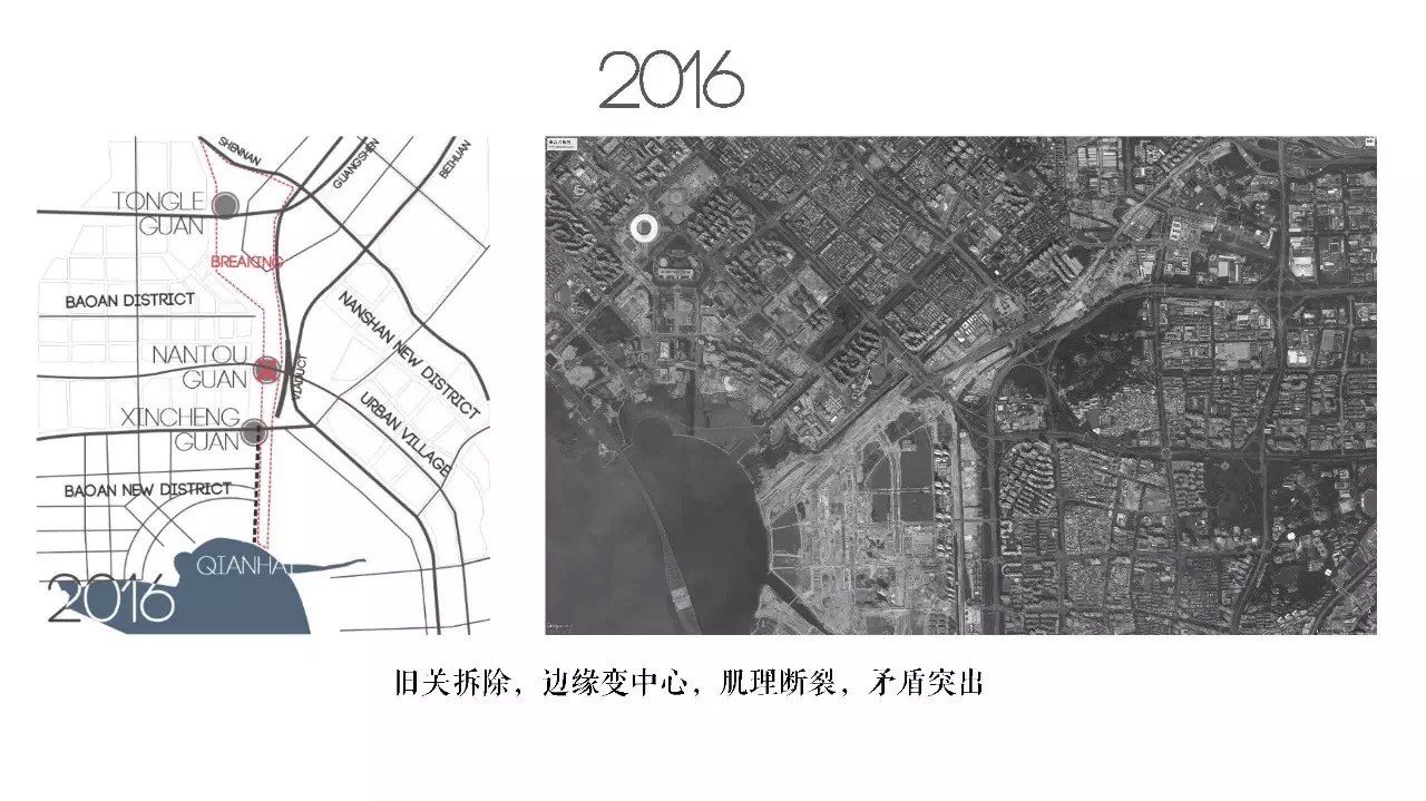 本次联合毕业设计以“后边界——深圳二线关沿线结构织补与空间弥合”为题,选址深圳市正在拆除和改造的二线关关线及其具有代表性的南头、同乐、布吉和溪涌四个关口,从城市肌理的衔接与弥合、非规划斑块的自组织生长、自然系统与开放空间、基础设施系统与节点、城市历史记忆与人文关照五个方面切入,探讨一条曾经的政治经济边界,如何成为城市生活复兴和公共空间再生的契机。