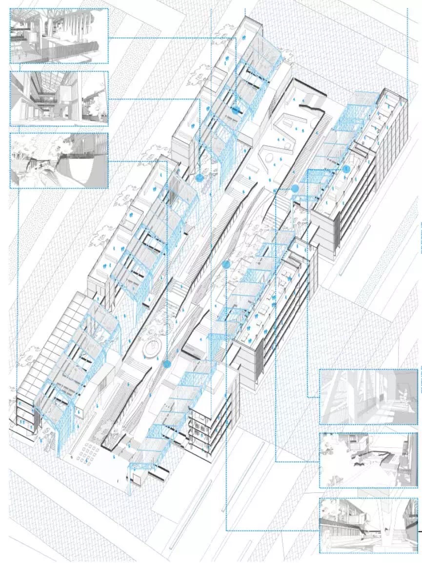 “二线”是深圳的“留痕”和“标示”,是城市重要的时空要素。本案由建筑和规划两个专业3位同学合作完成。关注城市生活的多样性和时间记忆的延续性,城市设计和建筑设计尝试整合“今昔”历史片段,模糊“内外”空间关系。不仅讨论建筑未来的“容器”,更注意构建城市日常的“磁体”。