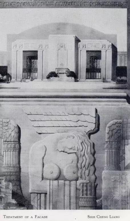 ▲中国留学生梁思成在1926年约翰·斯图尔森纪念奖学金竞赛中的参赛作品(图片来源:《宾夕法尼亚大学美术学院:建筑》(费城:宾夕法尼亚大学出版社,1920年代末期))
