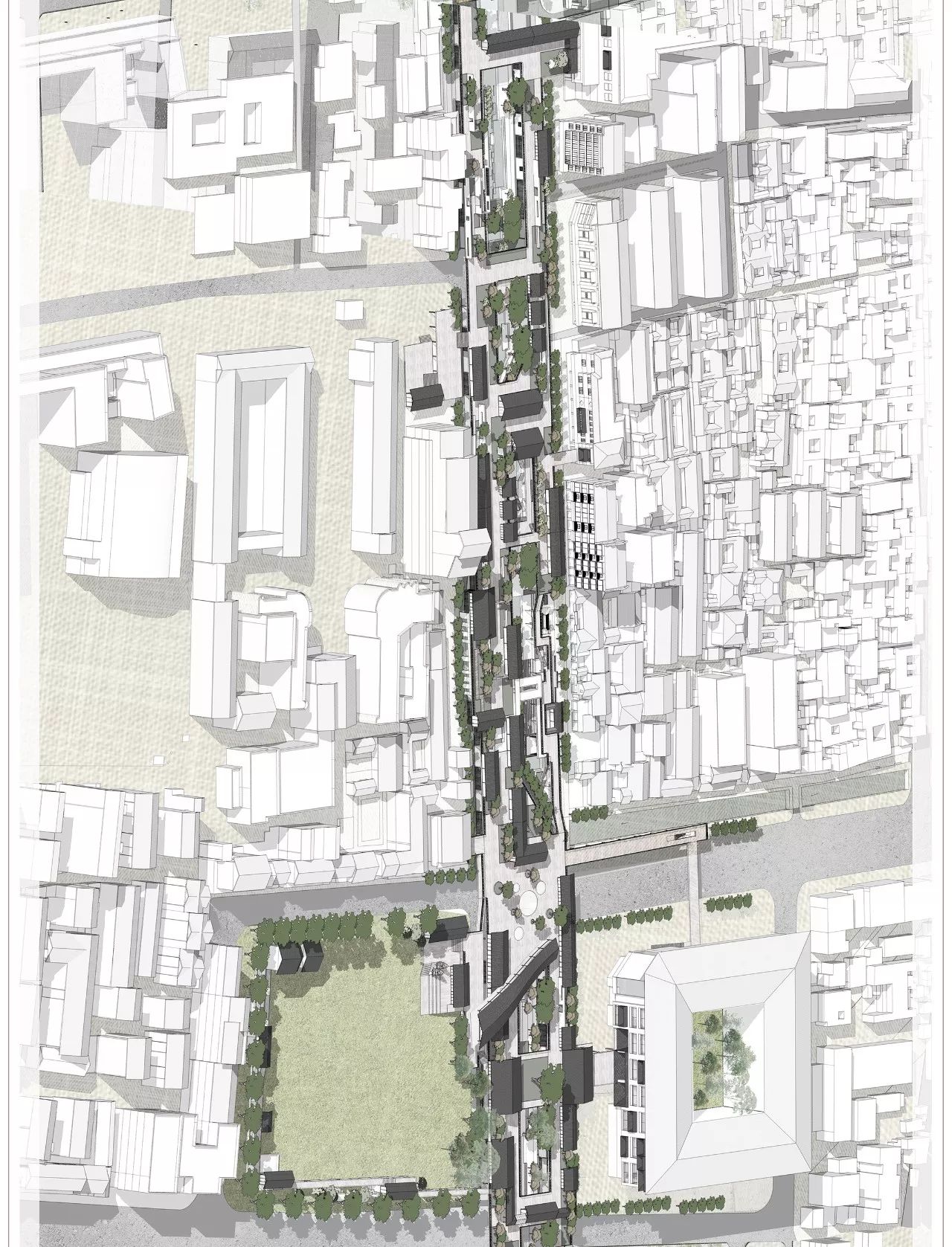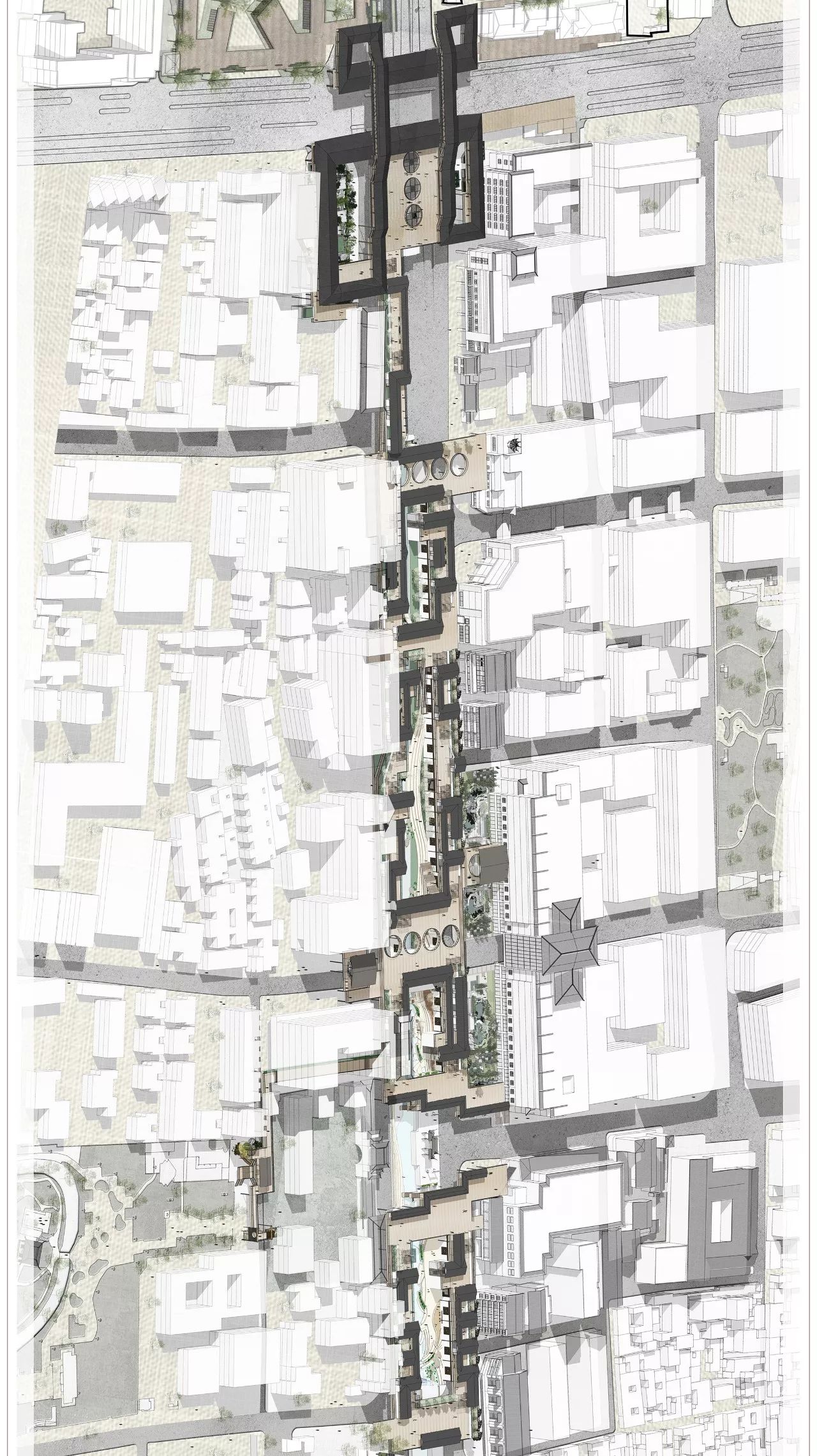 为此,由张应鹏老师带队,以研究生一年级建筑设计课程为契机,以新的城市交通网络为背景,以苏州市干将路古城区段的缝合与复兴为研究对象,以古城风貌保护与文化复兴为目的,通过城市设计建筑化、交通组织立体化的方式,对干将路的新时代的缝合复兴进行了新的探索。