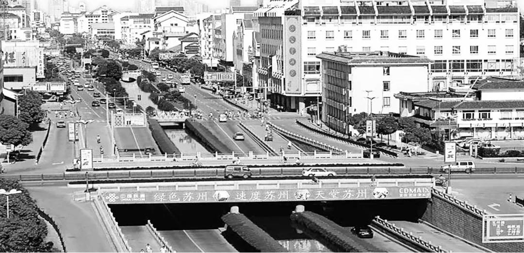 1994年干将路改造尘埃落定,整体格局呈现:路宽拓至50米,双向六车道,两路夹一河,两侧建筑限高24米。干将路在当时的历史条件下,大大改善了苏州东西向交通状况,同时增加了沿线的基础设施建设。