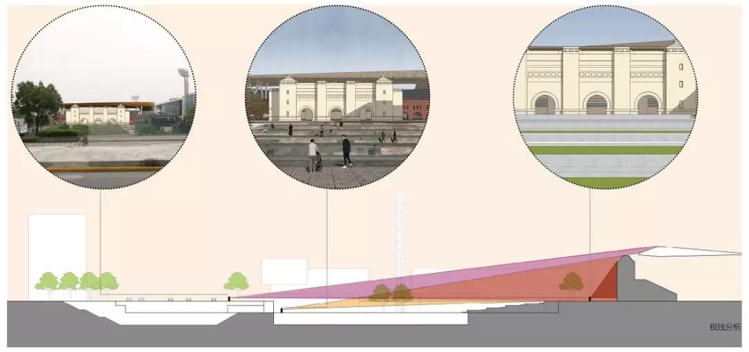 江湾体育场‘城市绿洲’提案西侧入口广场视线分析图