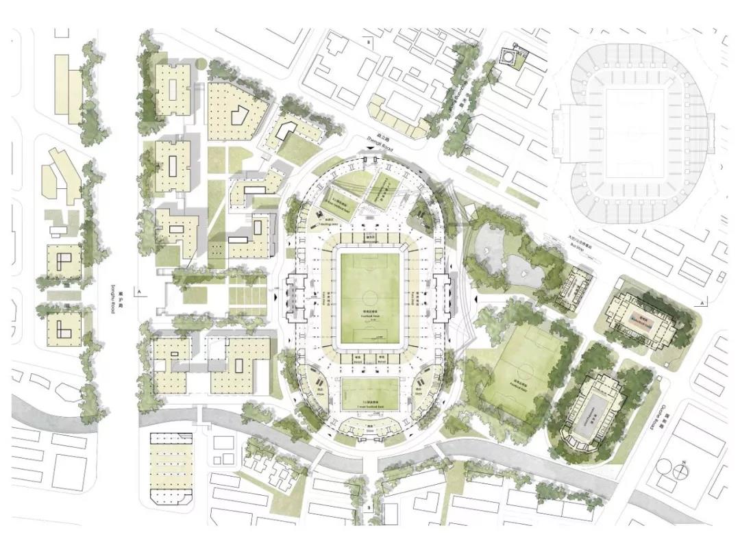 针对两个场地文脉及现有状况,提出了不同的更新策略。北京先农坛的重点是如何进行场地的业态重新规划组合、增加新业态激活城市空间,并处理好新球场与场地周边历史建筑关系。江湾体育场则为历史保护建筑,其重点是处理新嵌入的球场与老体育场的关系,并使之成为联系西边广场与东边体育公园的商业纽带,具有更好的穿越性及互动串联等。两个场地都需要从城市环境、历史文脉、功能计划、体育及公共建筑的特点等多重角度出发,通过比较研究,探讨建筑高度、体量、空间、形态及结构选型和表皮材料等问题。
