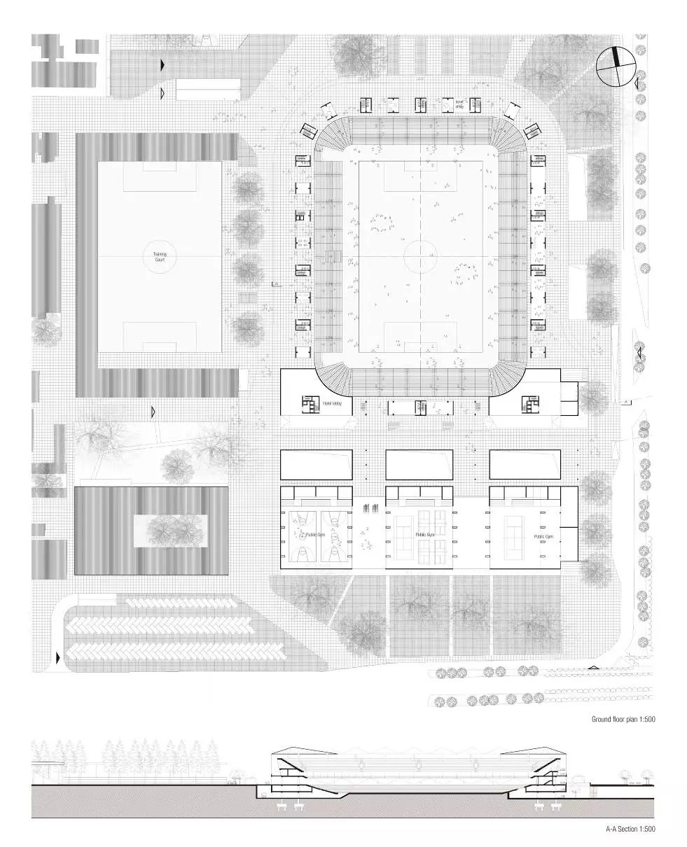先农坛‘体育综合社区中心’首层平面图及剖面图
