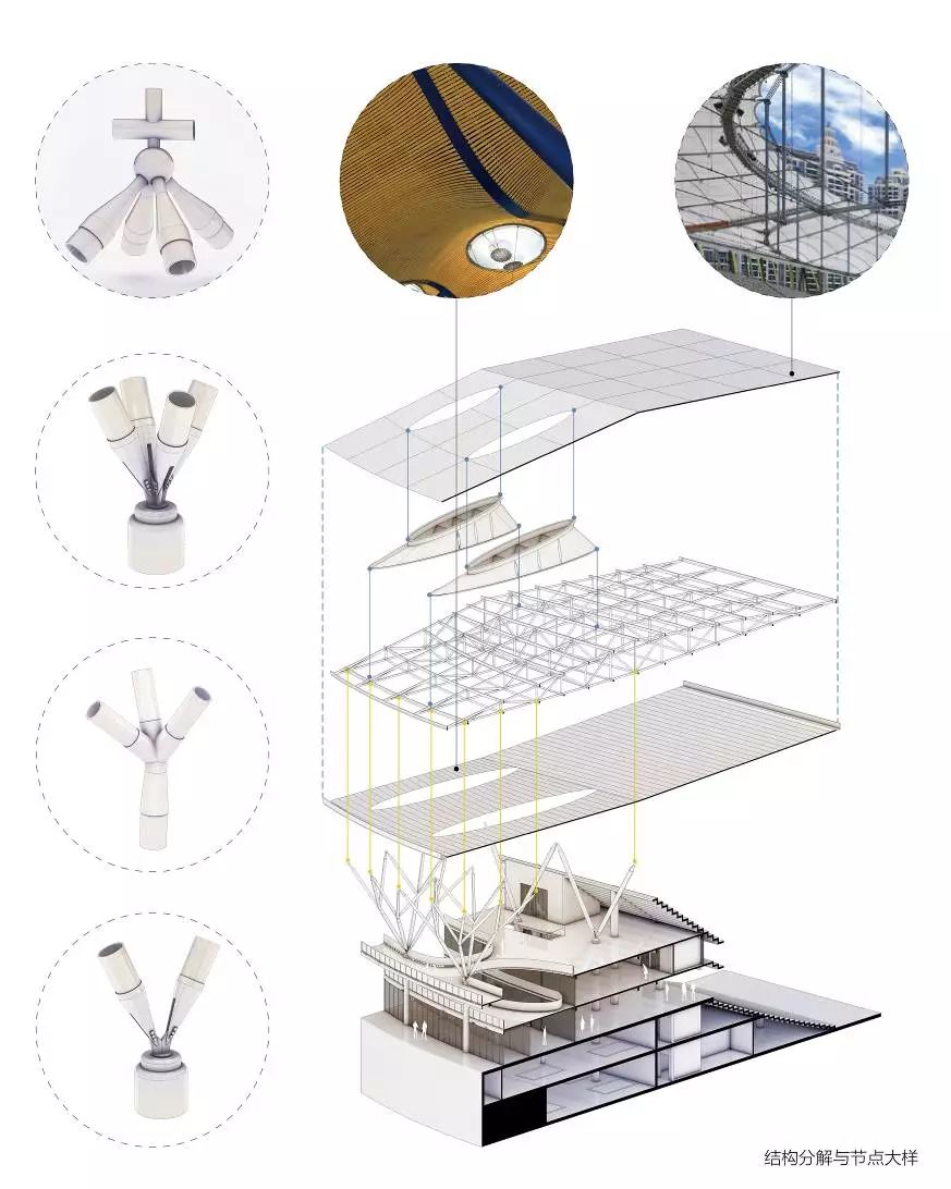 江湾体育场‘城市绿洲’提案主要结构构成及节点大样示意图