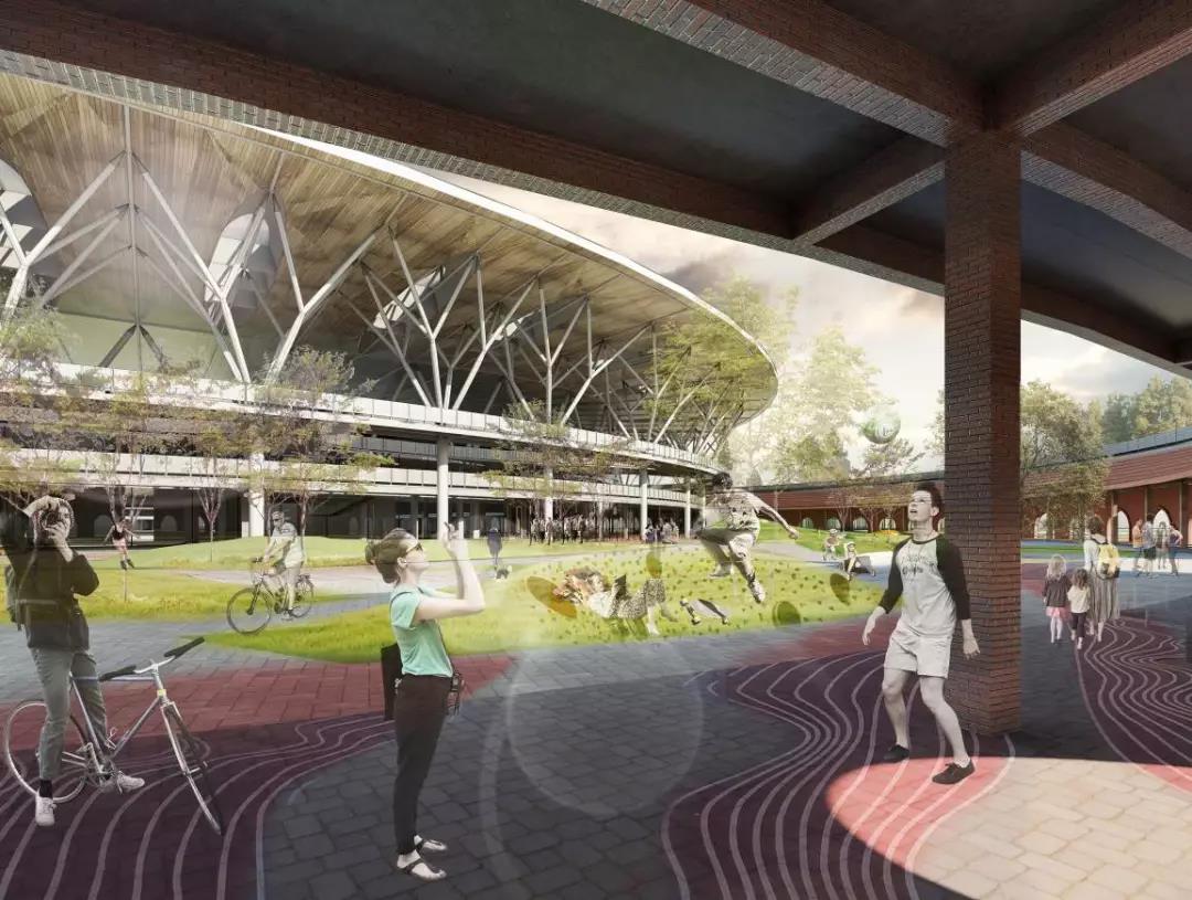 江湾体育场‘城市绿洲’提案南入口广场拱廊渲染图