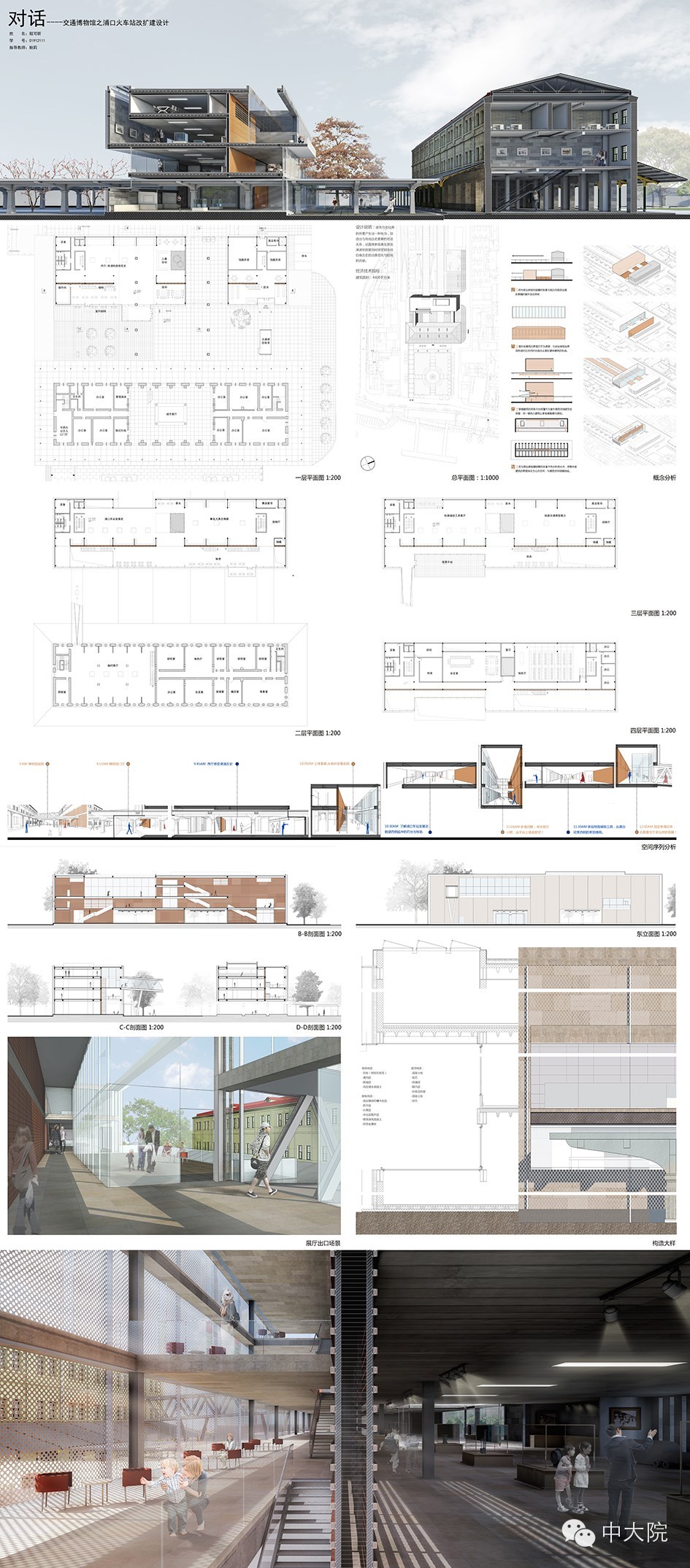 本课题就是在这样的背景下产生,为三年级的第三个课题“建筑改造”量身定做。课题要求 保留浦口火车站现在的站房针对目前月台的现状,自己策划并设计一座面积为4500平米的博物馆。