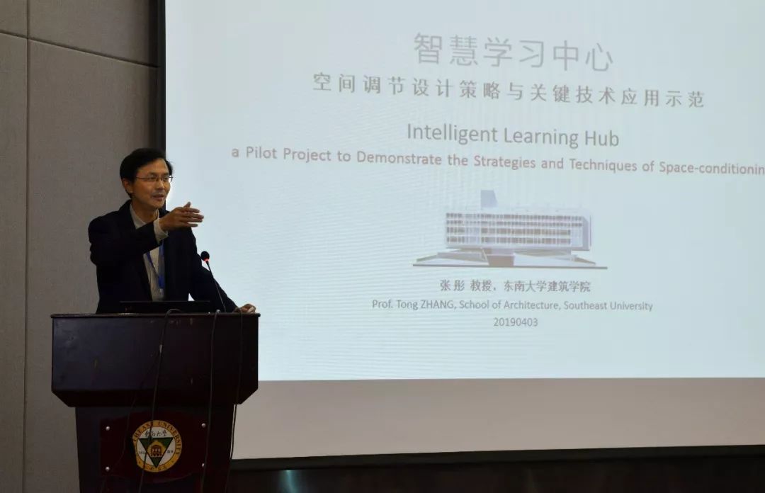在专家主旨报告环节,院长张彤教授做了题为《空间调节:基于形式能量法则的建筑环境调控——以国家重点研发计划课题示范工程盐城教师培训中心为例》的报告、东南大学建筑瑞典籍教授Ronald Wennersten做了题为《Urban Development and Climate Change》的报告,天津大学刘刚教授做了题为《目标和效果导向的低能耗建筑设计教学思考》的报告。来自东南大学的博士生闵天怡、苏州科技大学的硕士生周莉、中国矿业大学的硕士生董妍初作为研究生代表分别做主旨报告,江泓副院长为三位同学颁发了录用证明书。