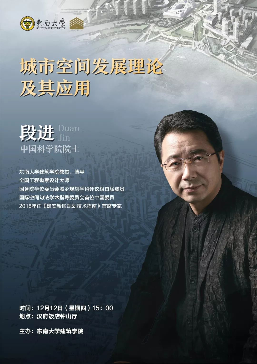 段进教授,男,中国科学院院士,1960年12月出生于江苏南京,1992年毕业于东南大学建筑研究所,获博士学位并留校。1992年至今在东南大学工作,现任东南大学城乡规划学科学术带头人、城市空间研究所所长、城市规划设计研究院总规划师、国务院学位委员会城乡规划学科评议组成员、中国城市规划学会标准化工作委员会主任委员、城市设计学术委员会副主任委员,住建部高等教育城乡规划专业评估委员会委员,住建部城市设计专家委员会副主任委员;教授,博士生导师,2006年被中国设计业8个协会联合评为首届“中国设计业十大杰出青年”,2010年成为学科首位“全国优秀科技工作者”,2011年江苏省人民政府授予“江苏省设计大师”,2016年住建部授予“全国工程勘察设计大师”,2018年任《雄安新区规划技术指南》首席专家,2019年获中国城市规划学会科技奖首届领军人才奖。出版第一作者专著12部,发表论文111篇。先后以第一获奖人获国际和国家级规划设计奖26项,其中包括全国优秀规划设计一等奖3项(2005年、2011年、2015年)、国际城市与区域规划师学会(ISOCARP)卓越设计奖1项(2018年)、欧洲杰出建筑师论坛(LEAF)最佳城市设计奖1项(2018年)等。获省部级科技进步奖一等奖2项(1990年、2018年)。获国际设计竞赛优胜奖17项,其中包括在全球279家单位参加的《河北雄安新区起步区城市设计国际咨询》中获得优胜(2017年)。3项作品入选国际百年城市设计巡展。