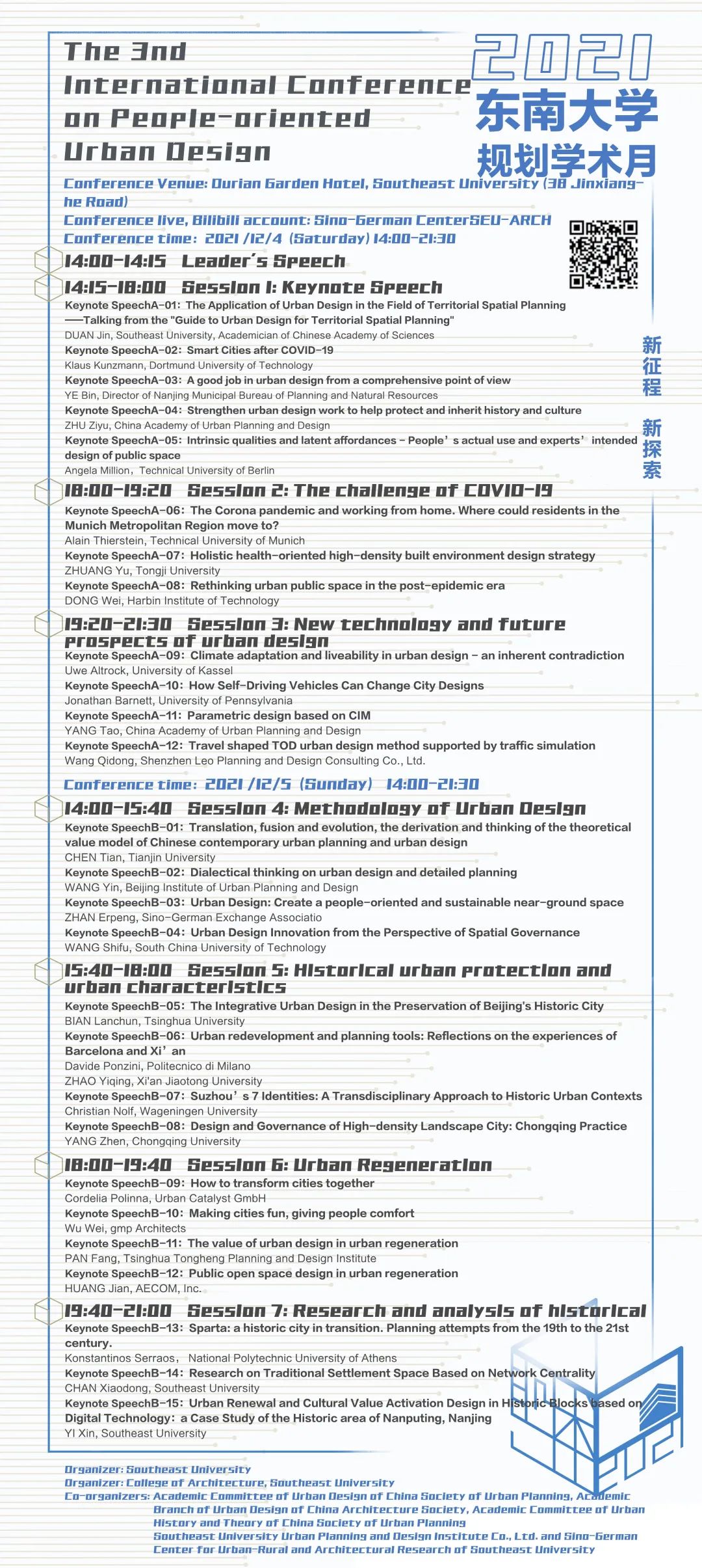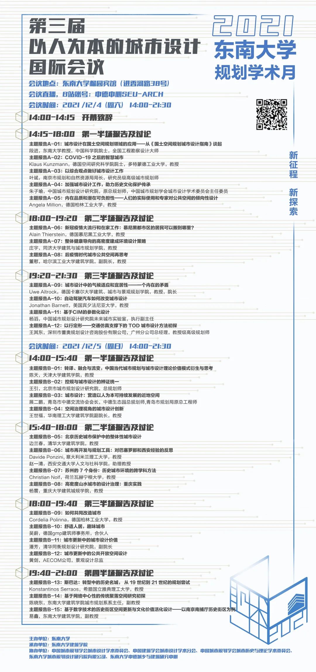 2021年12月4-5日学术研讨(会议采取线上方式举办,因时差原因,报告时间为14:00-21:00)B站直播:中德中心SEU-ARCH。
