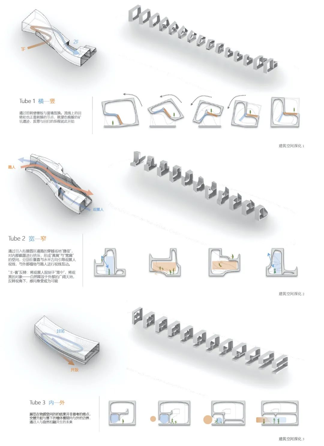 现有3D混凝土打印工艺具有极大的平面自由度,却不利于制造水平或悬挑构件。但打印构件翻转90度后就可以作为建筑的“切片”。多个切片连续排列就很自然地形成了建筑空间。