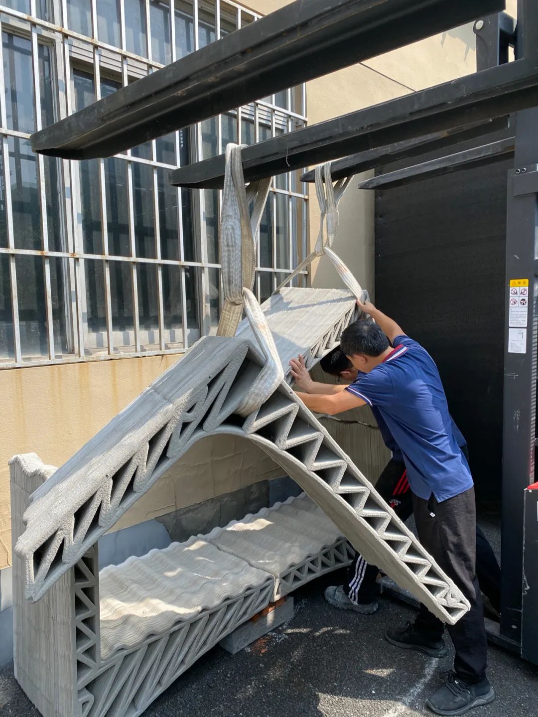 在施工中,联结多个切片的新型建造方式考虑了诸多因素。首先,每个切片的尺寸、构造需适合混凝土3D打印,打印完成后自身具有足够的强度,便于运输(也可在工地附近打印),利于现场吊装。