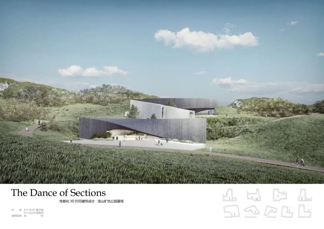 在工作营完成的众多设计探索中,陈智深&殷子衡团队设计的(切片舞蹈)Dance of Sections项目充分发挥了切片建造方法的可能性,创造了连续变化的室内空间,并充分结合开窗和家具的构造进行一体化3D打印,营造出了极为独特的室内空间体验。