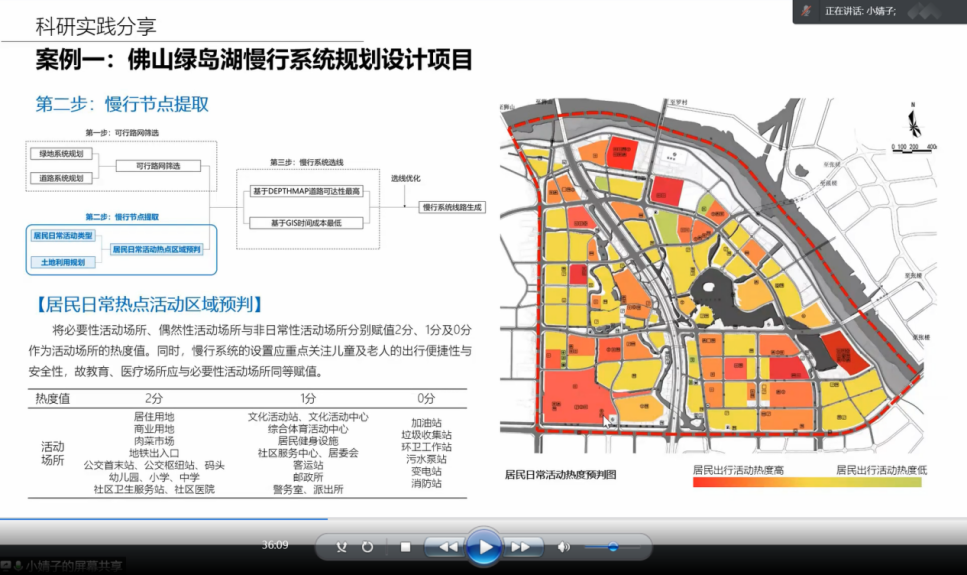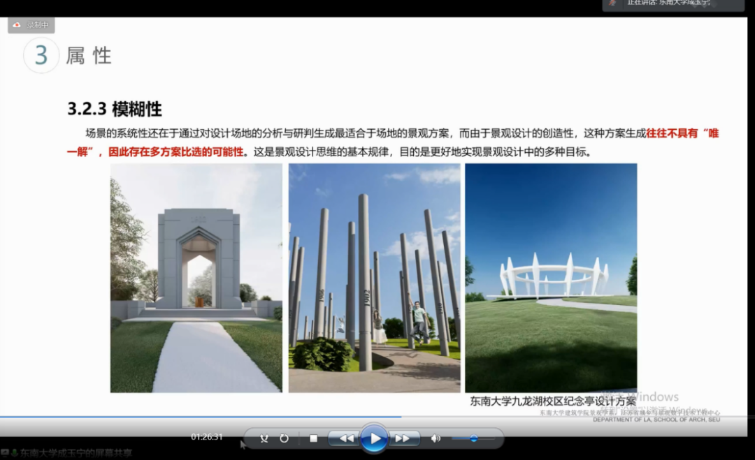 风景园林专业的科学研究是贯穿于“调研—分析—设计—建造—评价—优化”等各设计实践阶段的,例如设计前期的空间数据采集与分析、设计中期的模型建构与模拟、参数化设计与智能建造,以及设计后期的物联传感与监控、绩效评价与优化等。研究内容应能解决设计实践中的关键问题,研究成果应能指导、引导设计生成与实现,且借助数字技术与定量分析方法是开展科学研究的有力手段。该讲座通过博士研究生期间参与的三个科研与设计相结合的实践项目(成玉宁工作室:佛山绿岛湖慢行系统规划设计、南京清凉山空间品质提升项目、南京明城墙赏樱风光带设计),以及博士学位论文《数字技术引导下的景园空间构成研究》的介绍,与大家分享、交流博士研究生期间的学习经验。