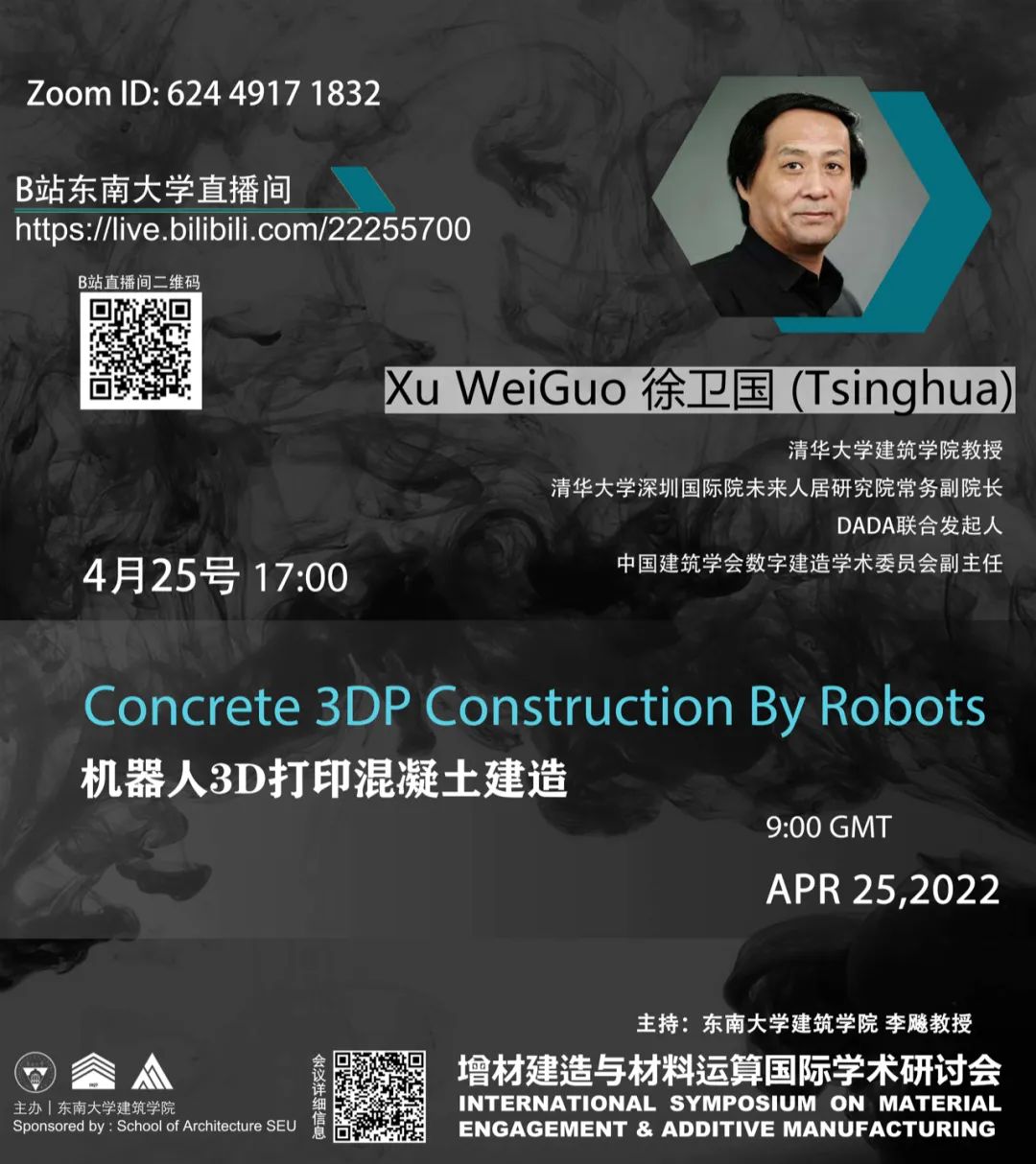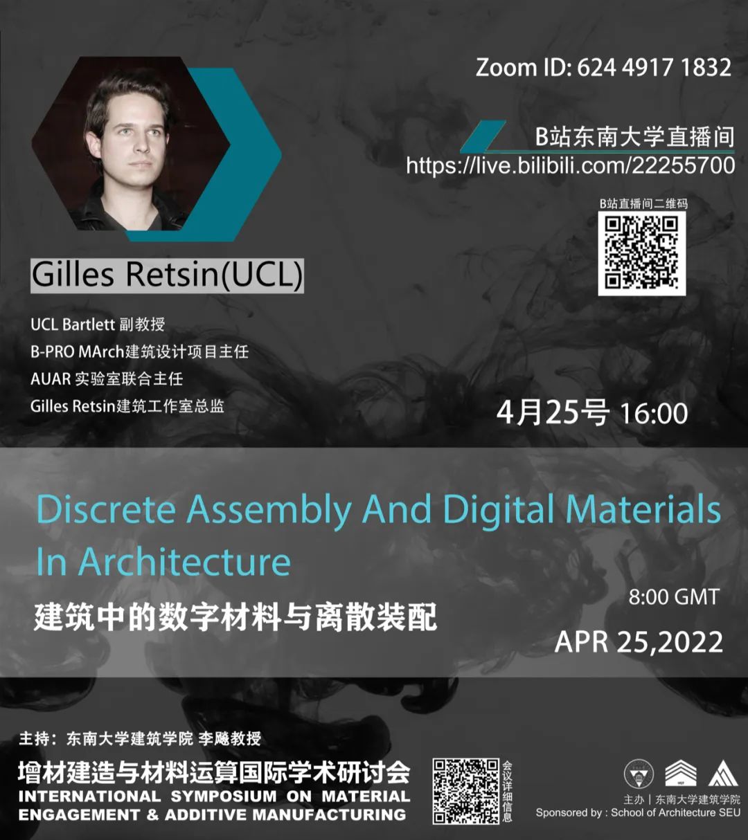 “增材建造与材料运算”国际学术研讨会第三场将于4月25日下午4点-6点在线上举行,英国伦敦大学学院(UCL)的Gilles Retsin教授与清华大学建筑学院的徐卫国教授将分享他们在3D打印建筑领域的最近研究成果。