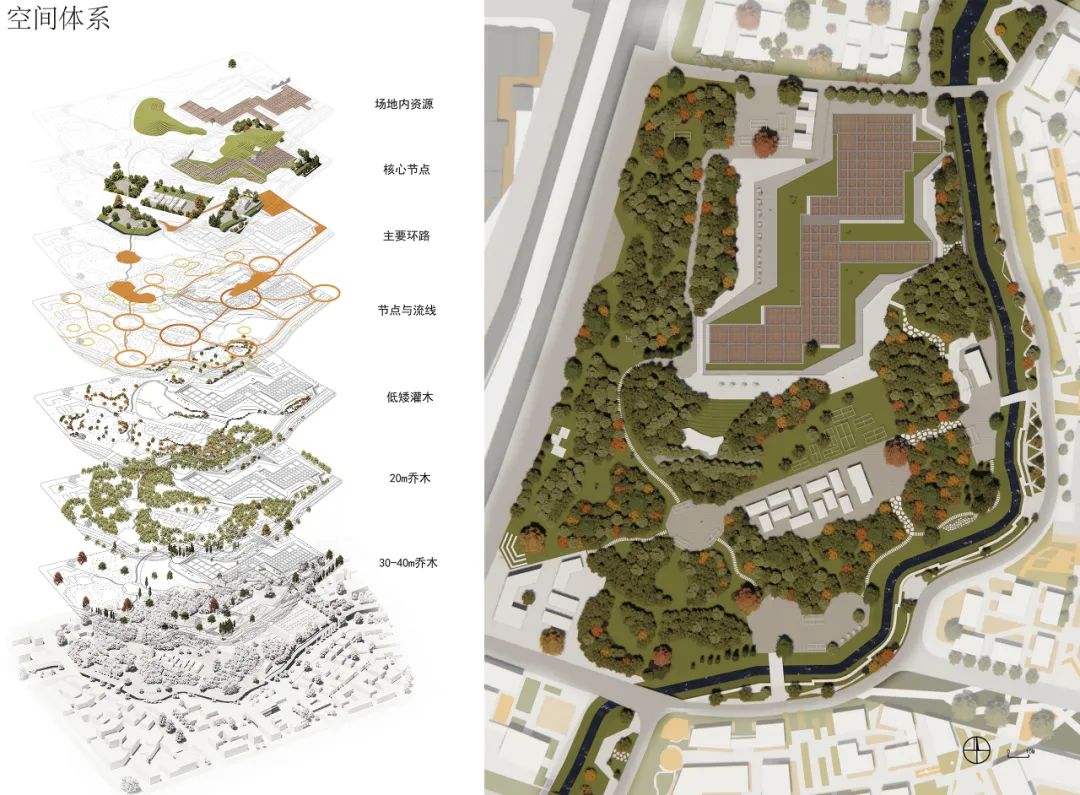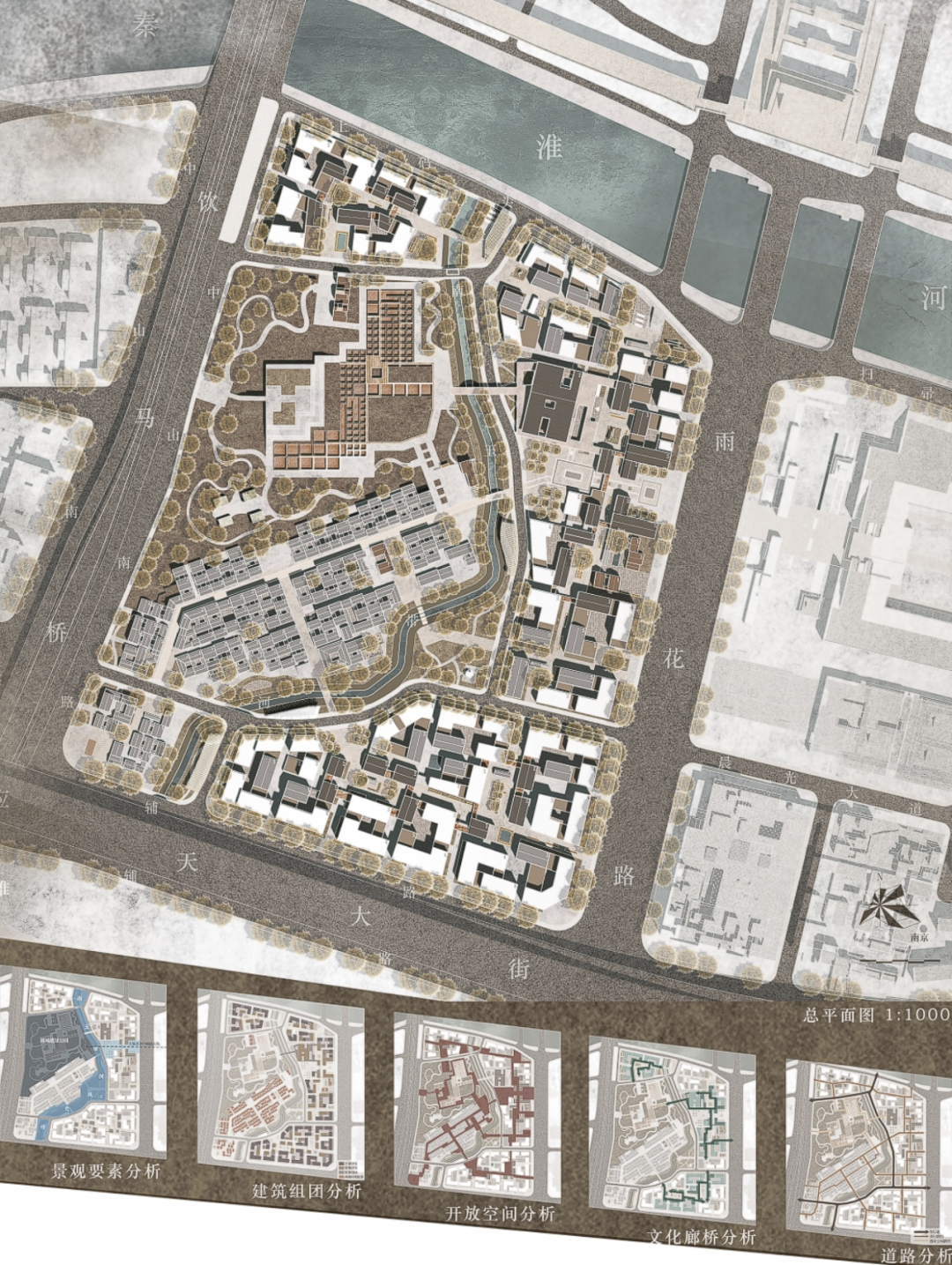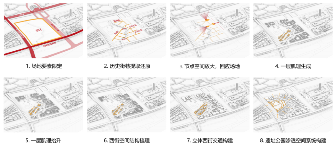 根据研究对象,设计课题的研究主体在不同尺度上进行转换,从宏观的城市系统与景观格局,中观的街区与开放性空间,微观的建筑与空间节点,构成了多重维度的设计层级。具体设计任务包括: