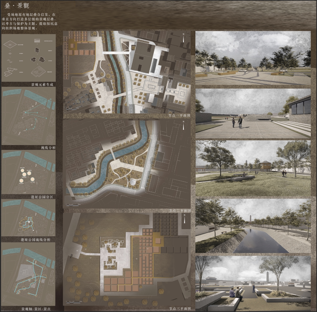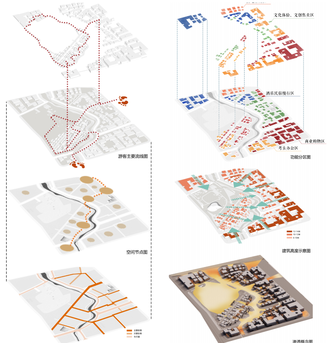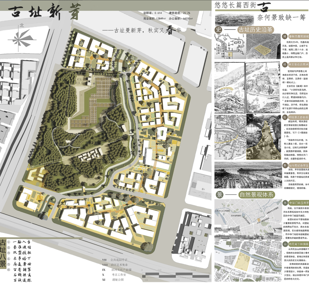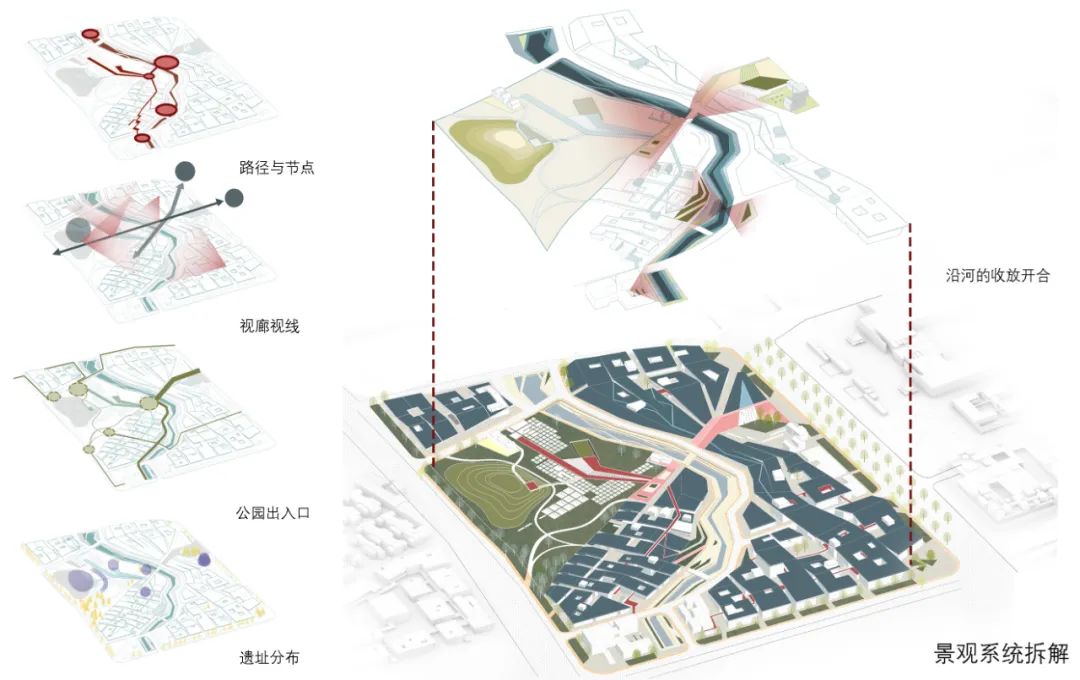 3)、细化遗址公园景观设计,包括遗址景观保护与展示、开放空间、景观廊道及滨水空间等进行规划与设计。