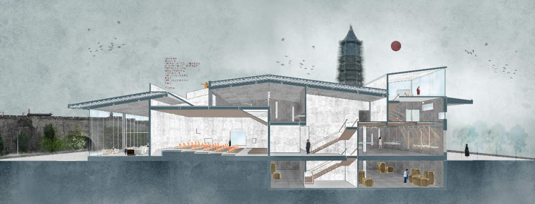 教学分两阶段进行。第一阶段主要进行西街地段的整体概念性城市设计为主,主要解决总体功能定位,空间系统生成,交通组织,景观结构研究等方面内容;第二阶段的教学主要进行越城遗址博物馆的建筑单体设计和越城遗址公园的景观深化设计。其中建筑单体设计针对前期的选址,进行针对性的设计定位,并通过对类型学、地形学、建构方法的综合运用。