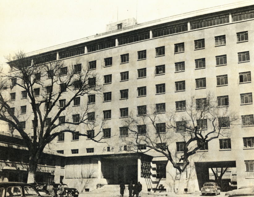 和平宾馆位于北京金鱼胡同和西堂子胡同之间。1952年,主体施工至四层时,正值“亚洲及太平洋区域和平会议”将在北京召开,经政务院决定,对原设计客房部分略作修改,以供会议使用。建筑于1952年9月落成,命名“和平宾馆”,为当时北京最高建筑。