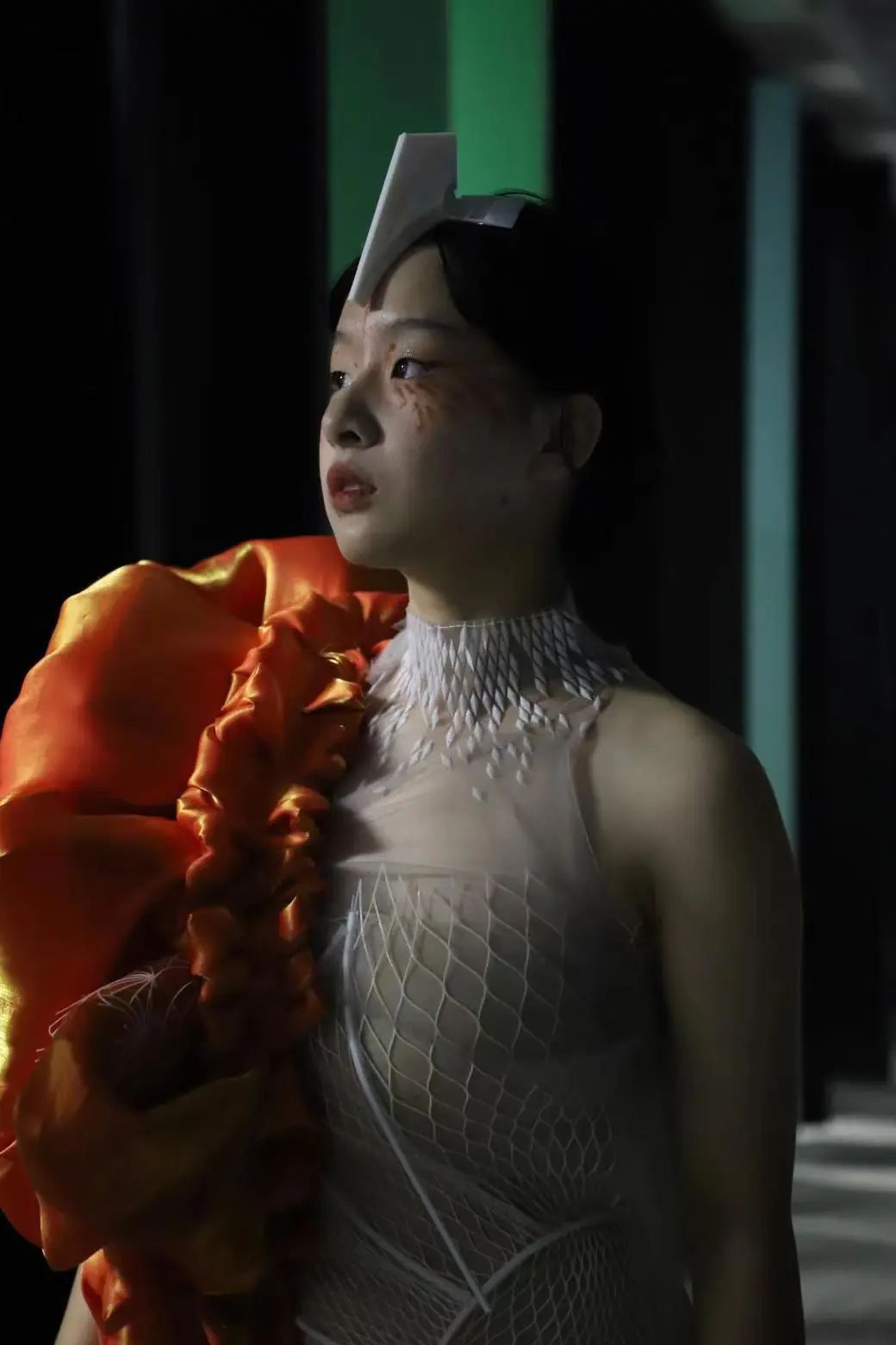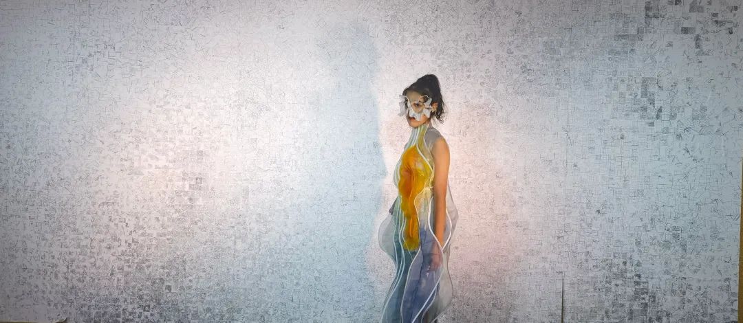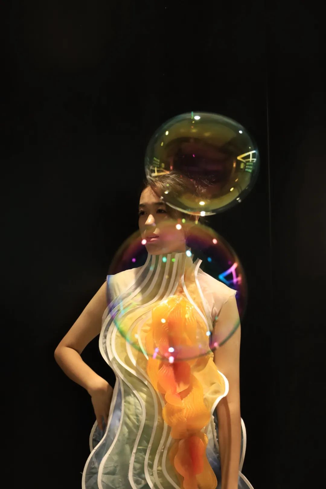 与温度的传递是连续的一样,服装整体的观感亦是流畅的、延续的。除平面的色彩流淌外,三维也增加布料高度上的变化,以增强视觉上的立体感。