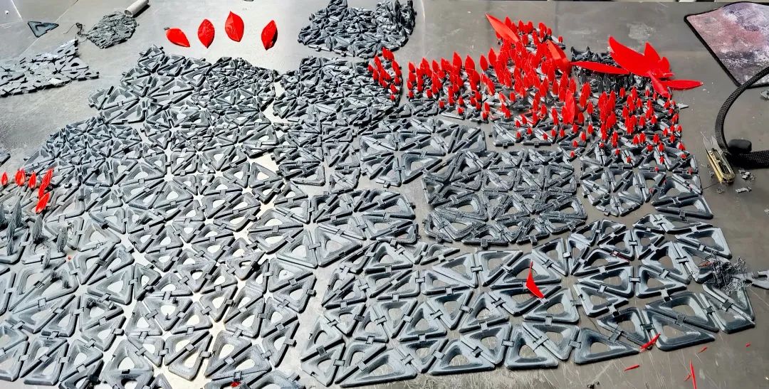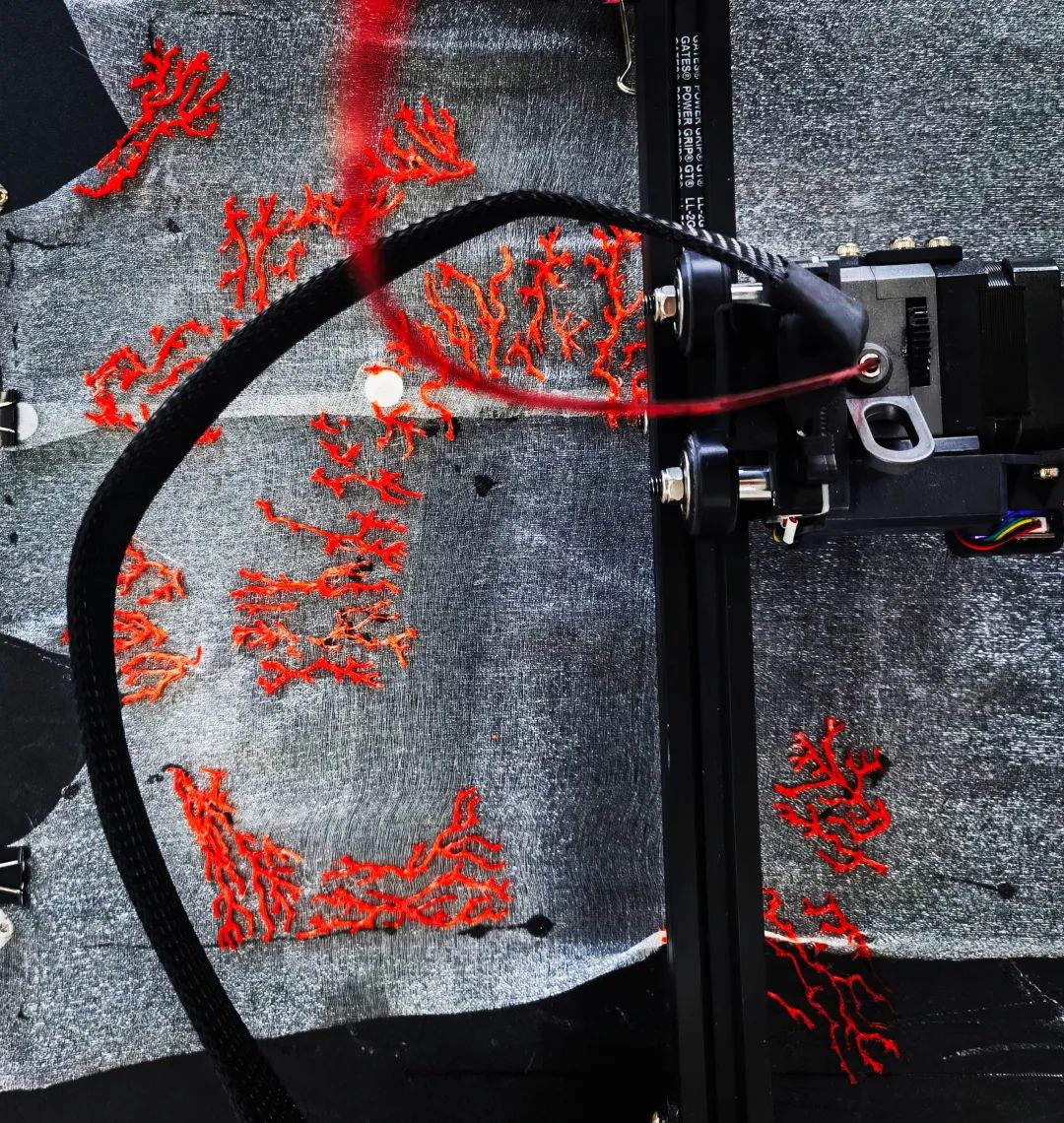 增材制造发展至今,已经形成了多样化的3D打印技术,其中熔融沉积打印(fused deposition modeling,FDM)技术最为普及,本次工作营也以FDM工艺作为3D打印织物研究的主要技术路径,并实验了TPU等新型材料来拓展3D打印织物的性能。
