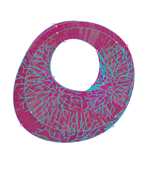 服装或许是最贴近人体的设计。通过服装,我们希望能展示身体的力量。借助参数化的手段,我们模拟人的伤口与痕迹,血管从腰间的伤口处蔓延至全身。最终通过白色的外罩遮盖。最外层的遮盖隐藏了内在,而展示时将脱去外罩,从而展现生命的纹理。