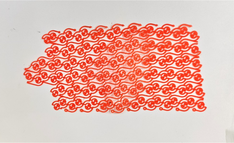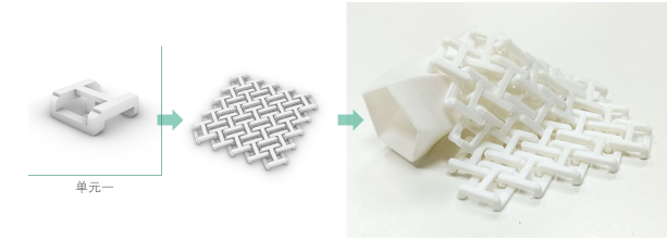 网格单元是3D打印柔性面料的一个研究方向,打印材料本身弹性有限,而通过结构设计,可以赋予面料拉伸的特性。