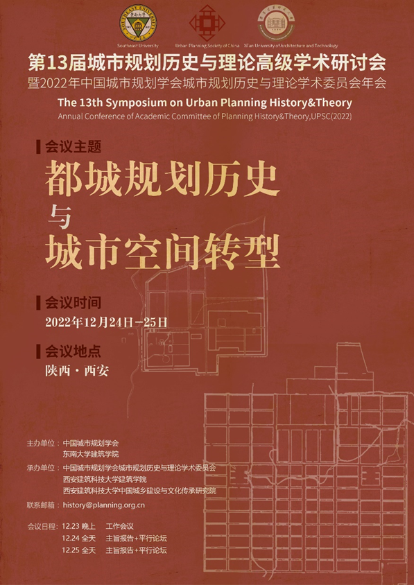 第13届城市规划历史与理论高级学术研讨会暨2022年中国城市规划学会城市规划历史与理论学术委员会年会将于2022年12月24-25日在西安建筑科技大学召开。