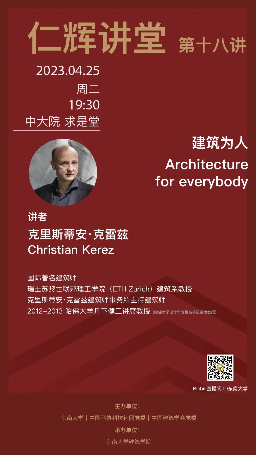 本期,由国际著名建筑师、瑞士苏黎世联邦理工学院(ETH Zurich)建筑系教授克里斯蒂安·克雷兹主讲,采取线上线下同步直播的方式开展。