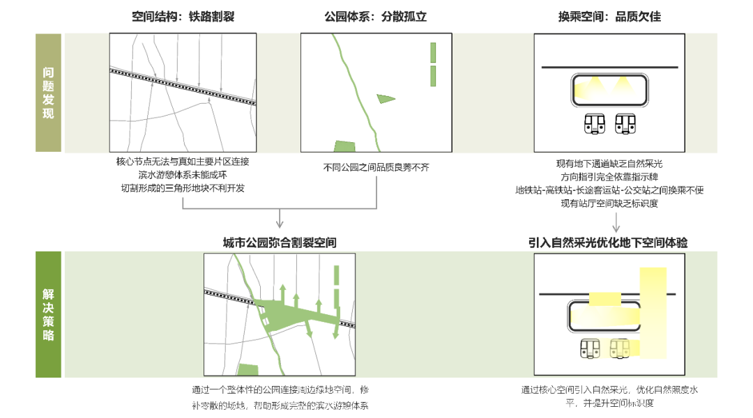 许珂 刘宇飞设计说明:本方案旨在创造功能复合的立体城市公园式TOD,来应对场地南北空间割裂、周边绿地孤立分散、换乘空间品质不佳的问题。在设计手法上,通过抬升地面形成跨越轨道的公园,同时设置下沉空间实现交通核心地下互联,以整体性的立体城市公园弥合割裂的城市空间,形成流线独立且视线关联的游憩慢行体系与换乘快行体系。下沉空间作为上下叠合的连接贯通节点,将城市公园渗透进入地下空间,起到优化地下空间体验的作用。在设计过程中通过软件模拟分析对方案进行了采光性能优化,以满足不同空间的采光需求。由此实现TOD中交通、公园、光线三者协同作用,为行人与游客带来换乘便捷、景致宜人、阳光充沛的上海西公园站的体验。场地分析: