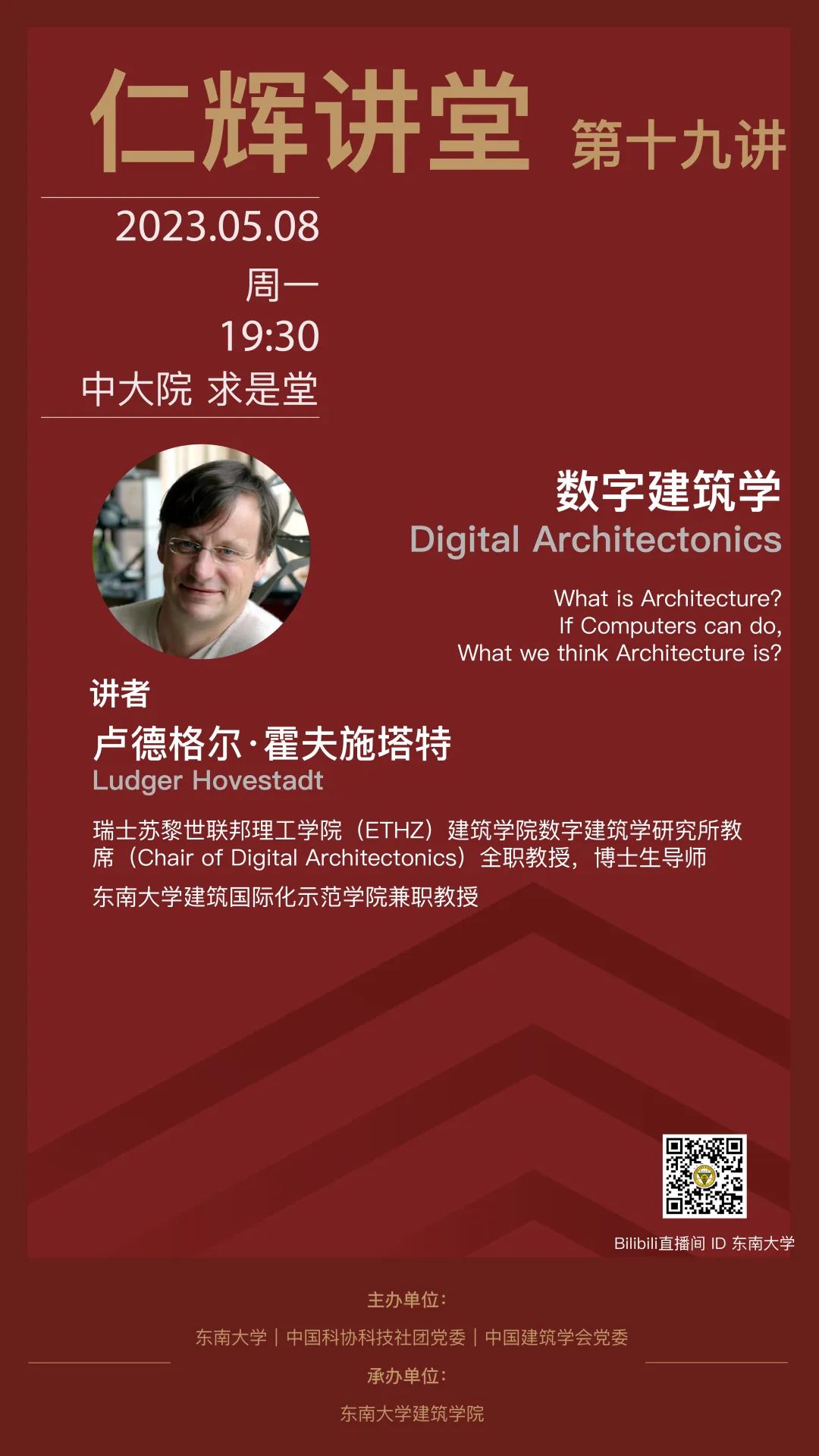 本期,由瑞士苏黎世联邦理工学院(ETHZ)建筑学院数字建筑学研究所教席(Chair of Digital Architectonics)全职教授Ludger Hovestadt主讲,采取线上线下同步直播的方式开展。