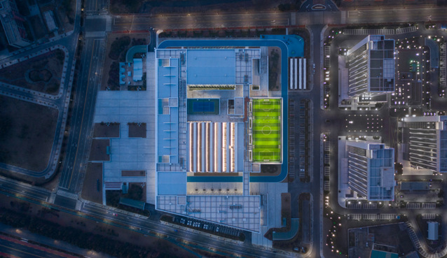 项目分A、B两个功能区。A区位于场地西侧,主要包括了综合运动大厅、网球羽毛球馆、通用健身房等一系列室内健身场所,以及环形健身步道、网球场、五人足球场、极限运动场等一系列室外健身设施;B区位于场地东侧,主要安排了小型商业、餐饮、娱乐等辅助功能。A、B两区在内部交通和形体上进行了连接,并共用地下机动车库、人防等设施。