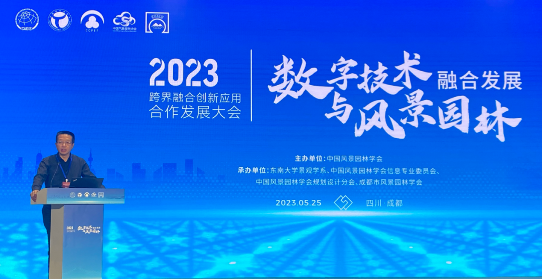 2023年5月23-25日,由中国地理信息产业协会、中国旅行社协会、中国林业与环境促进会、中国气象服务协会、中国风景园林学会共同举办的“2023跨界融合创新应用合作发展大会”在四川成都召开。本次大会主题为“创新地理信息价值,服务数字中国建设”,共设“数字技术与风景园林融合发展”“数字农业与乡村振兴”等6场专题论坛。