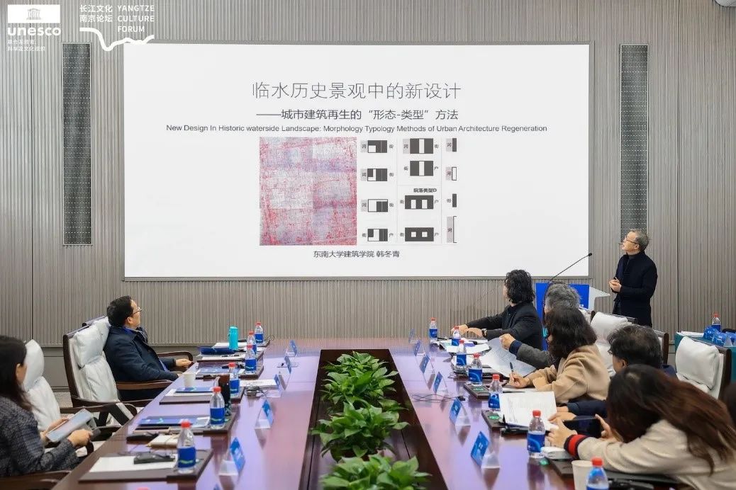 Han Dongqing, Professor of School of Architecture, Southeast University; National Engineering Exploration and Design Master; Chief Architect, Architects & Engineers Co., Ltd. of Southeast University, gave a report entitled "New Design of Waterfront Historic Landscape: A ‘Morphology-Typology’ Approach for Urban Architectural Regeneration". He explored the relationship between the morphological structure of the site and the types of local spatial architecture from the micro-environment,or the relationship between the characteristics of activity venues, and he selected four cases distributed in different locations of Nanjing’s ring water system, including the Xiaoxihu Block, the West Wuhuali in riverfront section of Qinhuai River, "Shuimu Qinhuai" and Zhongshan "Tourist Market". He specifically discussed architectural design responses to the requirements of the different historical environmental management and control, and to reflect on the conservation and regeneration of stable structural characteristics and endogenous logic in micro-plots through historical research.